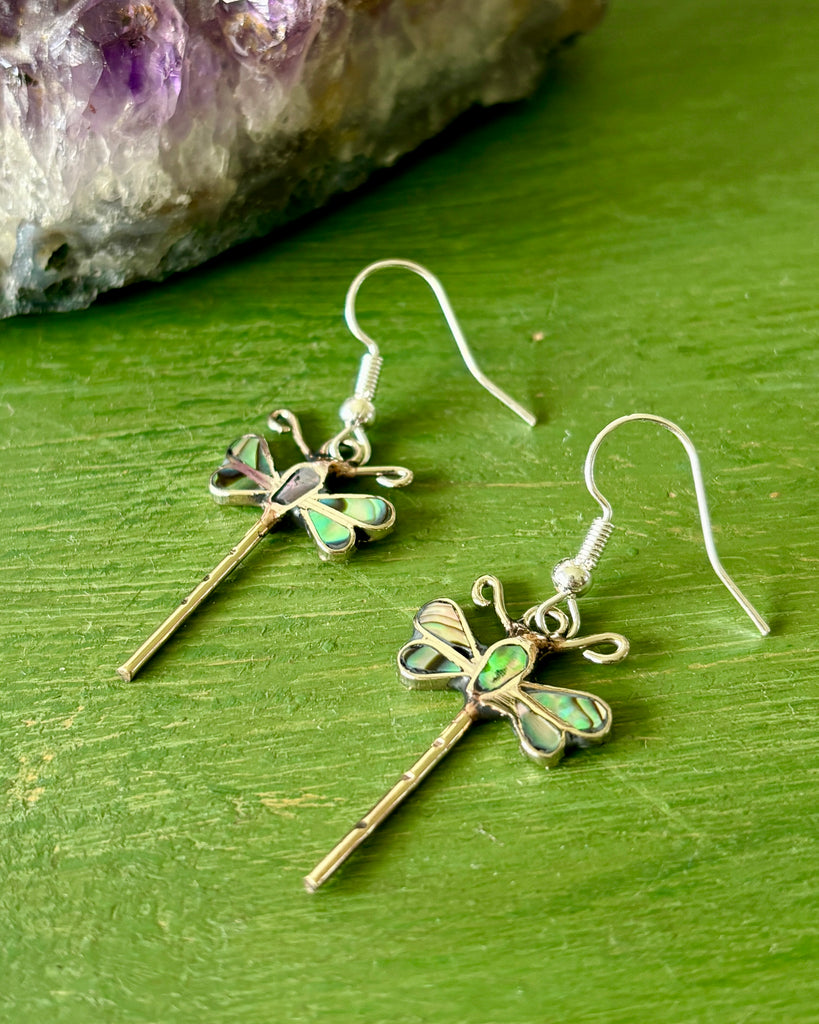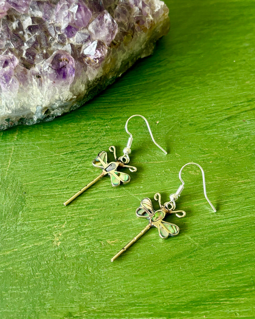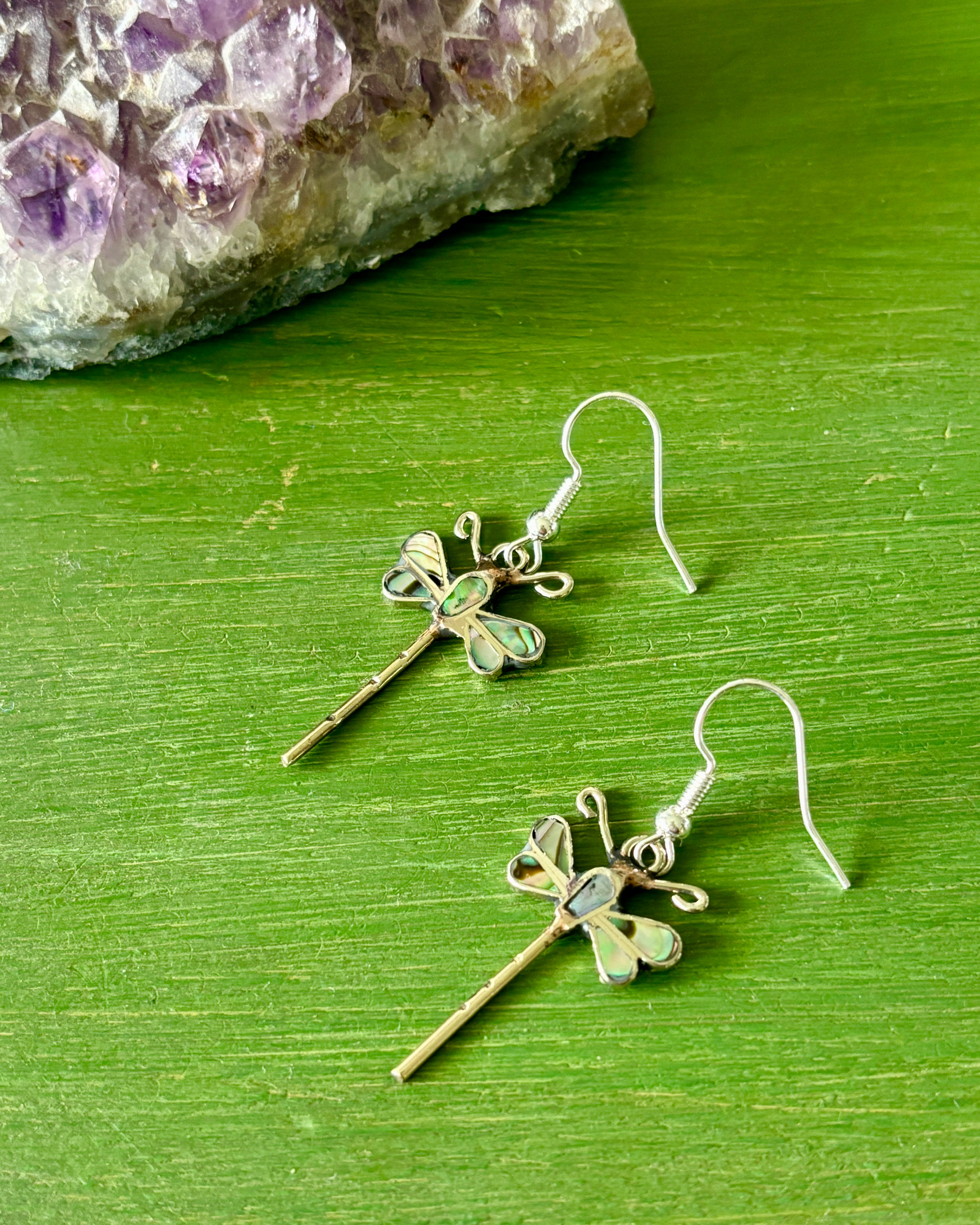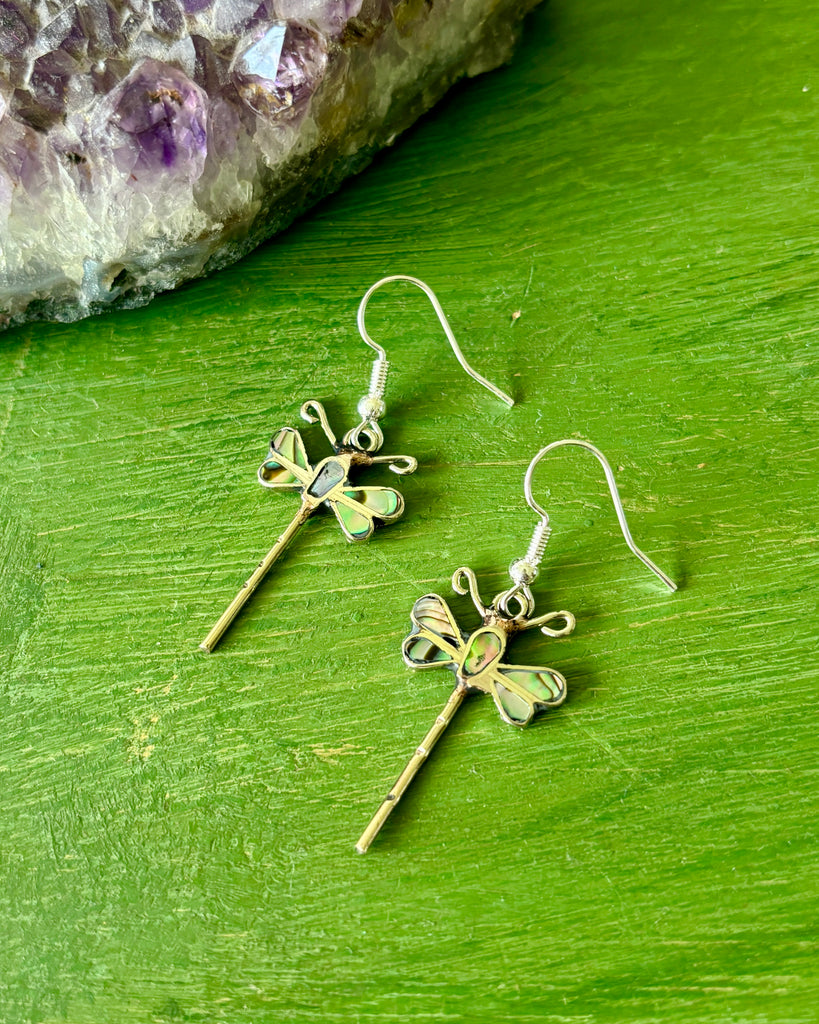 Dragonfly Earrings made from magical Abalone shell. They have silver plated hooks & measure 5cm in length.
