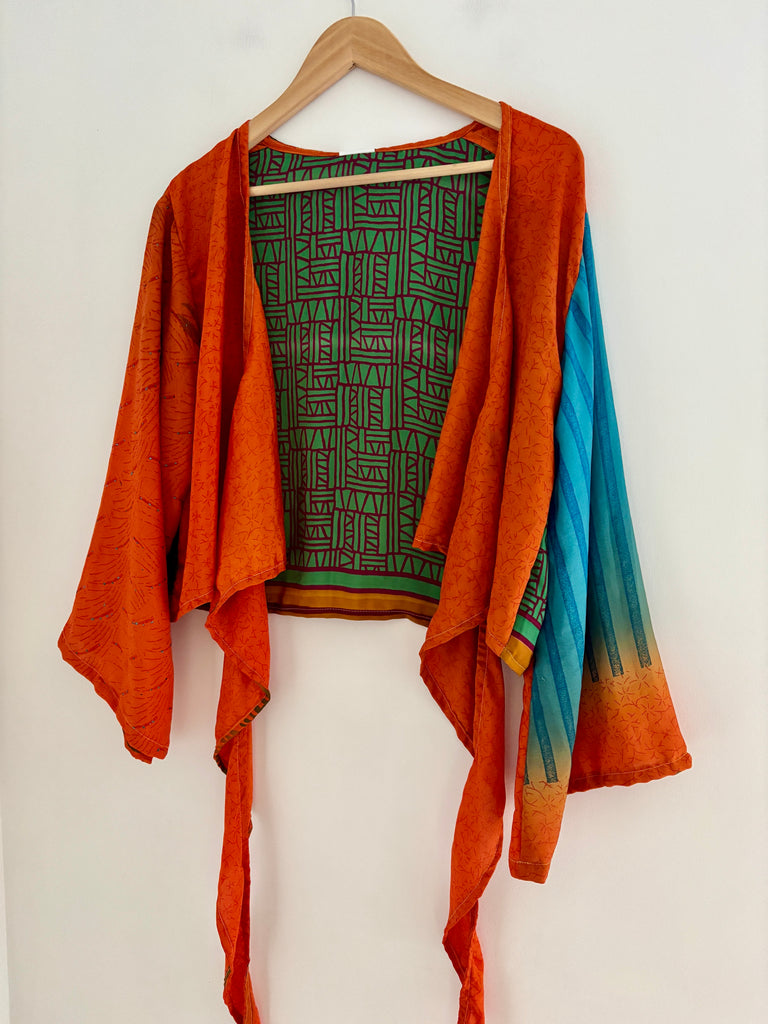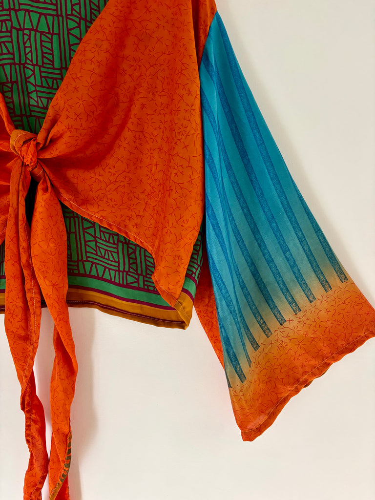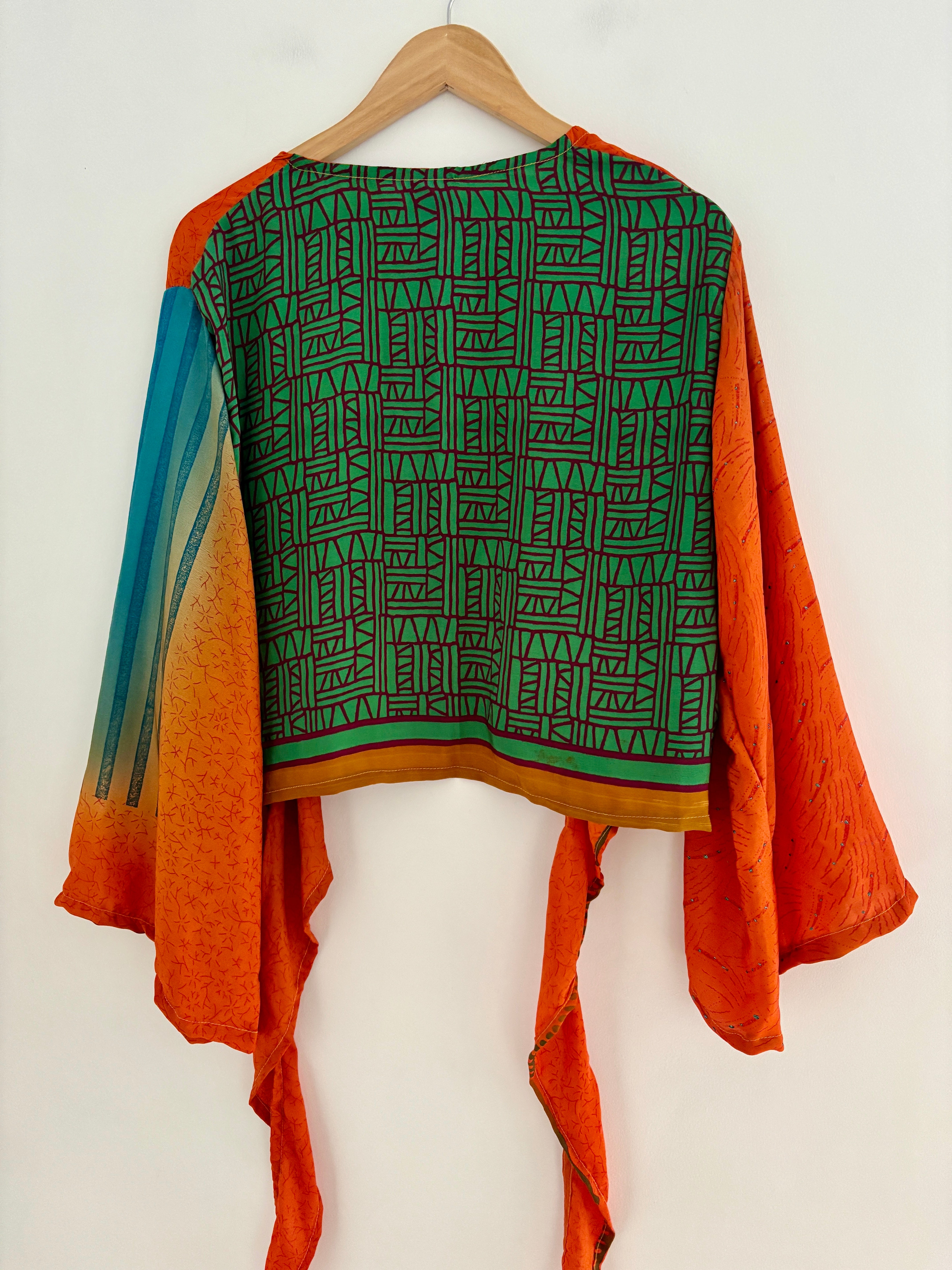 These beautiful bell sleeve tops are made from recycled Sari silk, that would have otherwise gone to waste! With flared sleeves & large ties, they can be worn in a variety of ways.