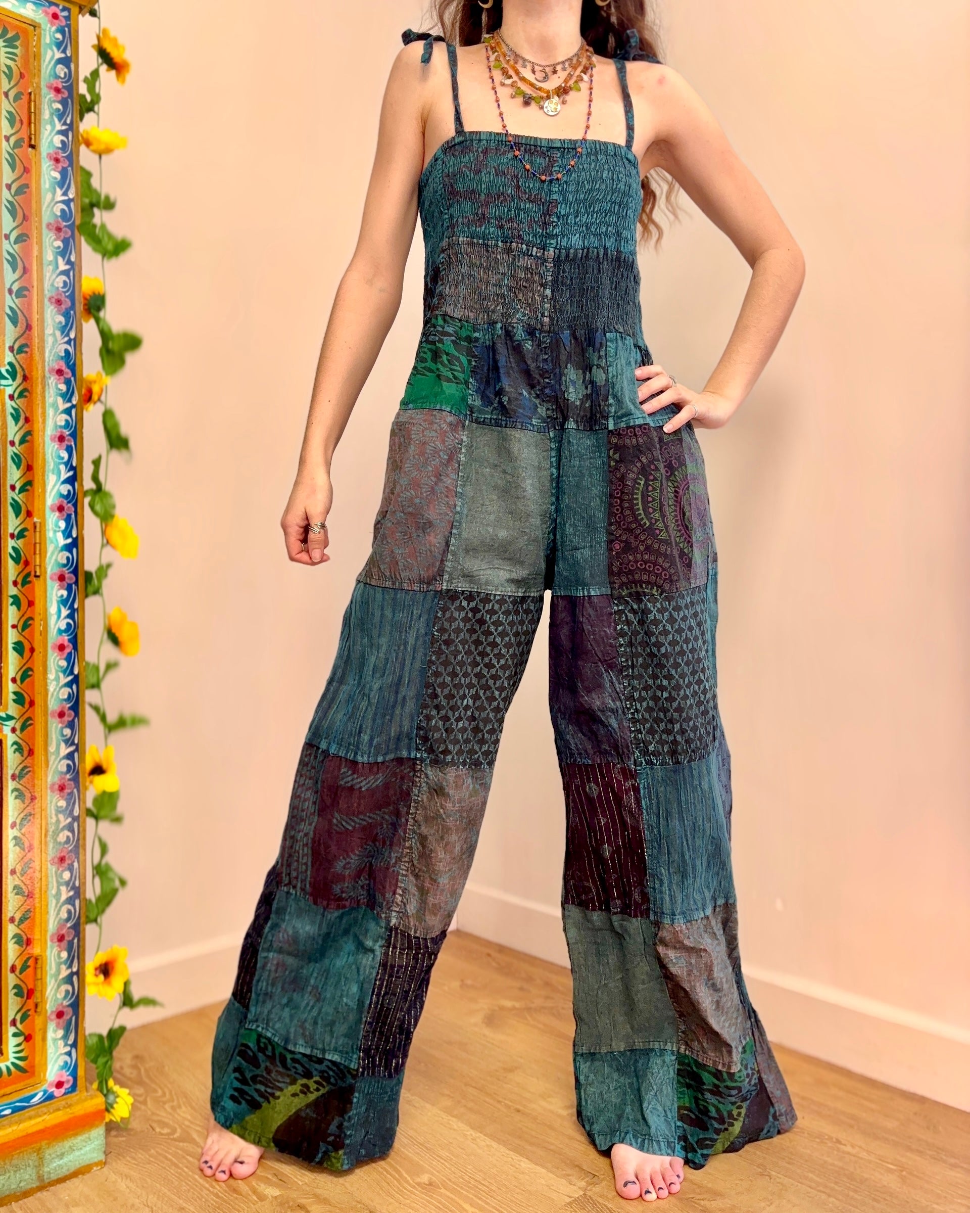 These jumpsuits are made from beautiful 100% cotton patchwork fabric. It has straight legs and adjustable straps.