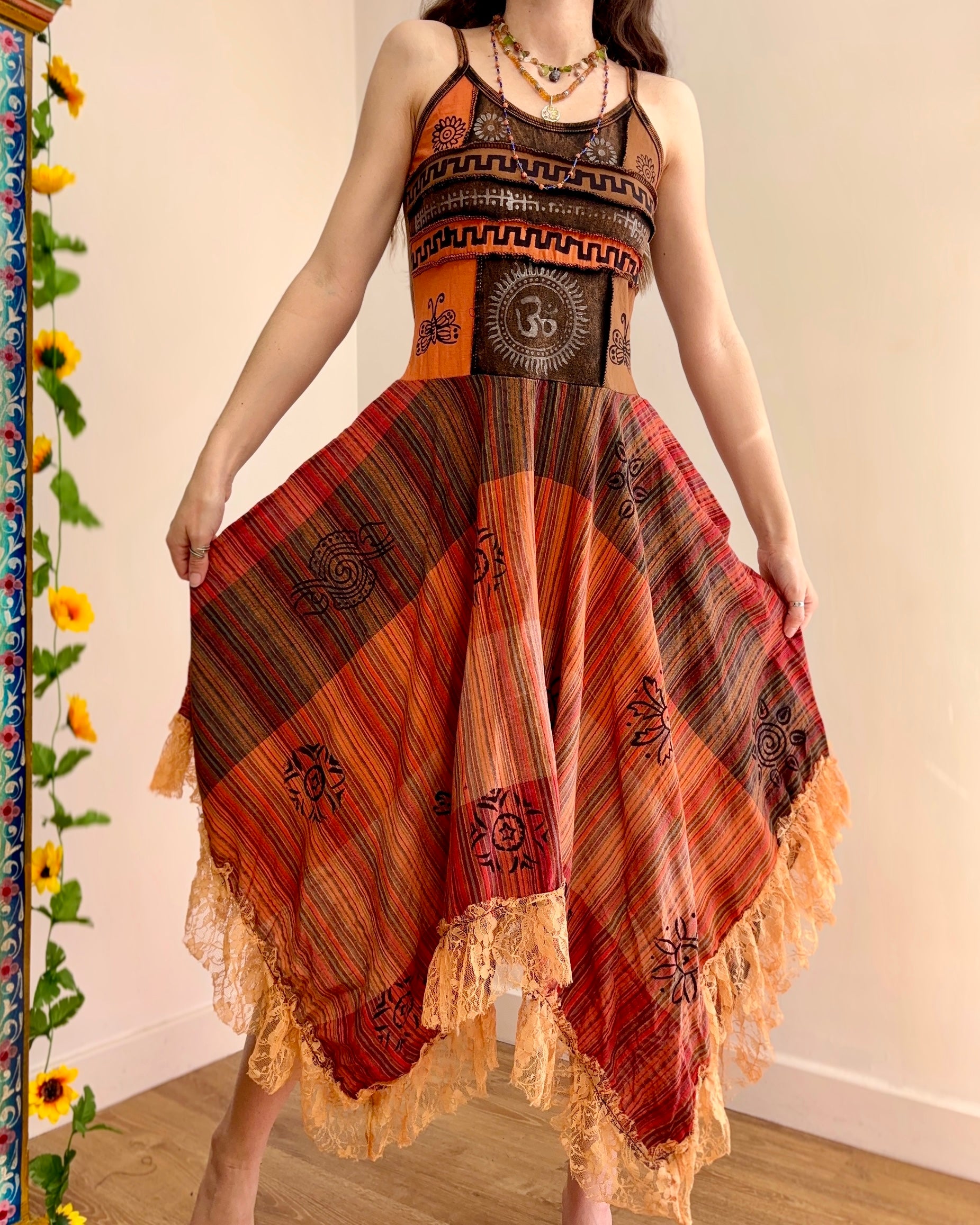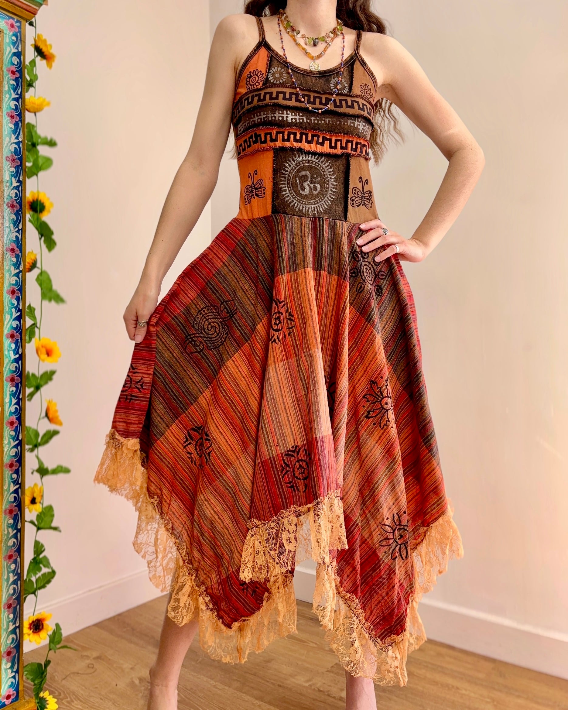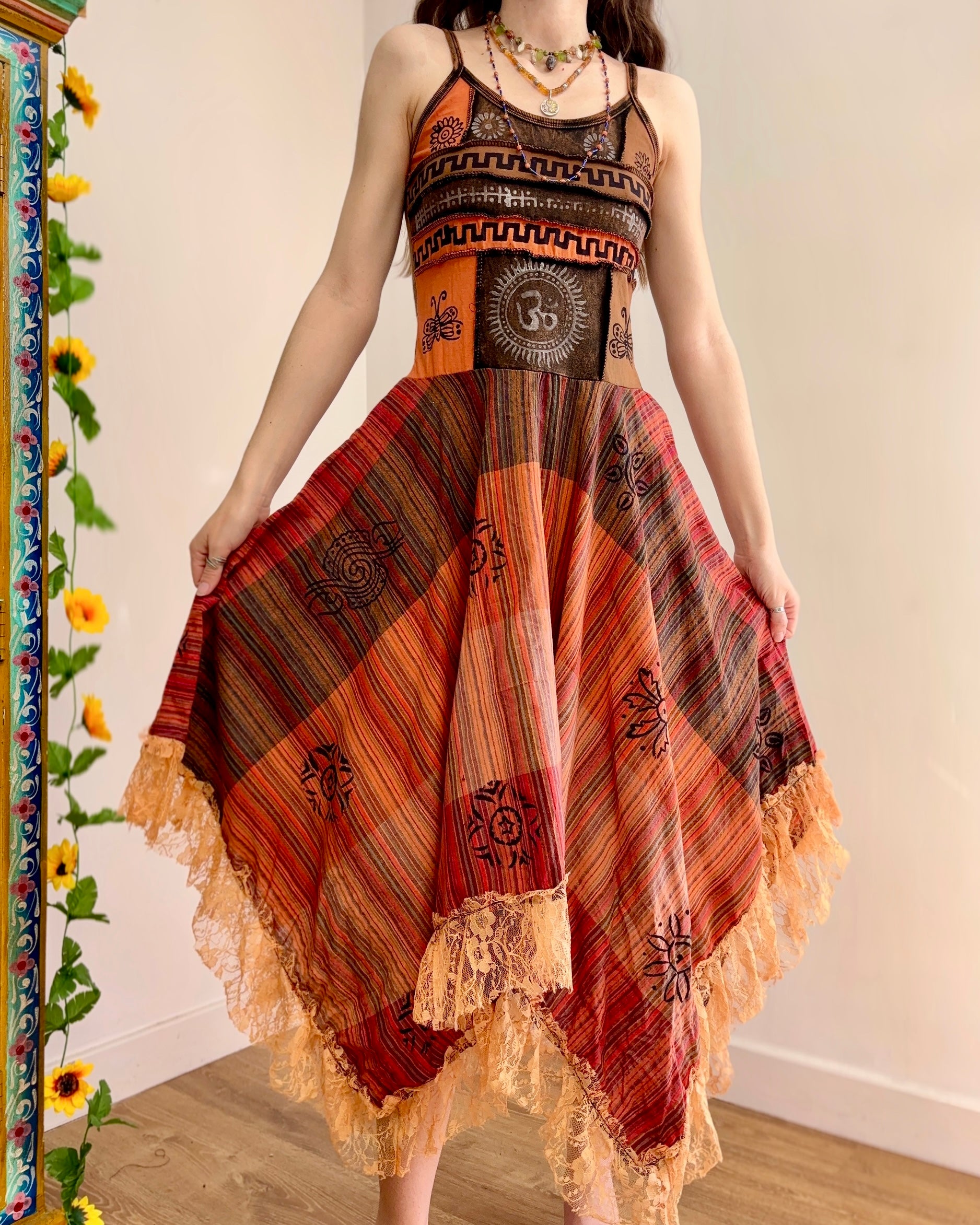 These dresses are made from 100% cotton and feature a cami top with an asymmetric lace bottom, giving a fairy hippie look.