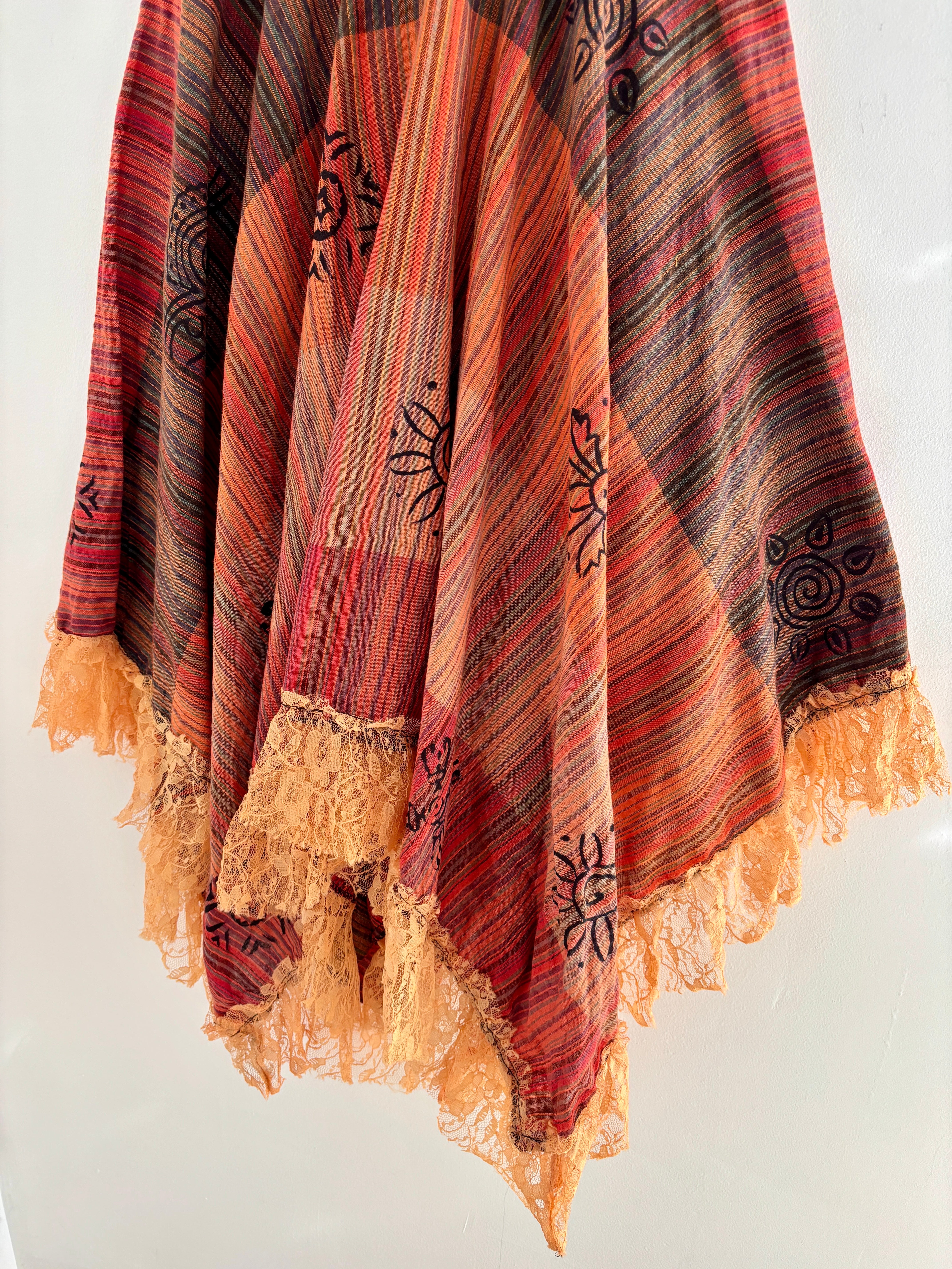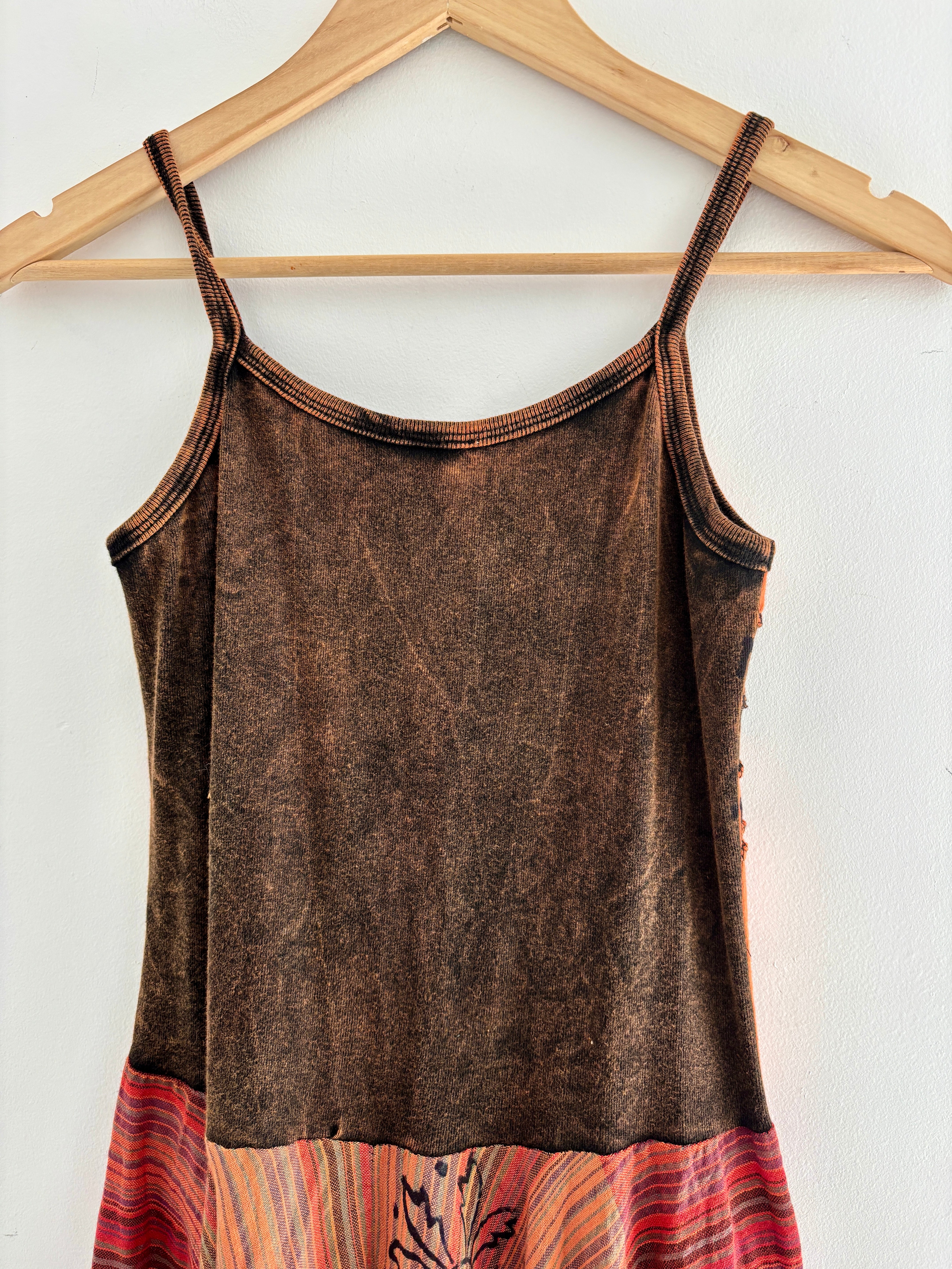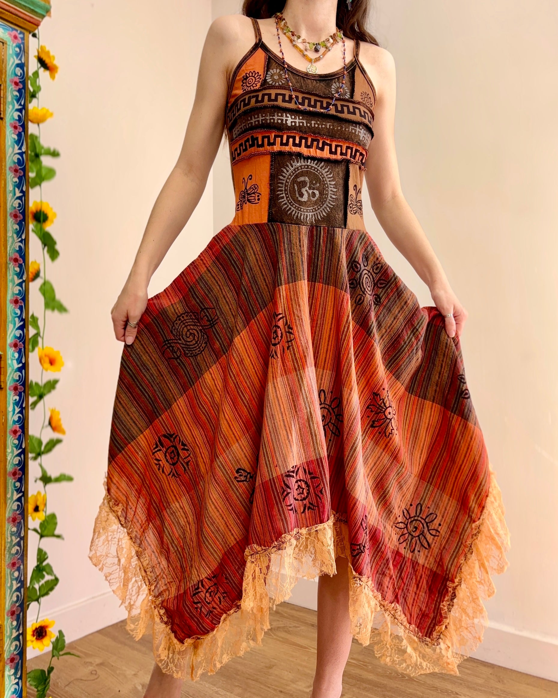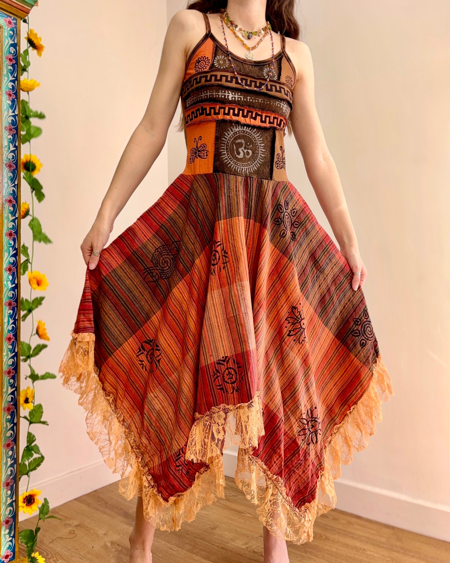 These dresses are made from 100% cotton and feature a cami top with an asymmetric lace bottom, giving a fairy hippie look.