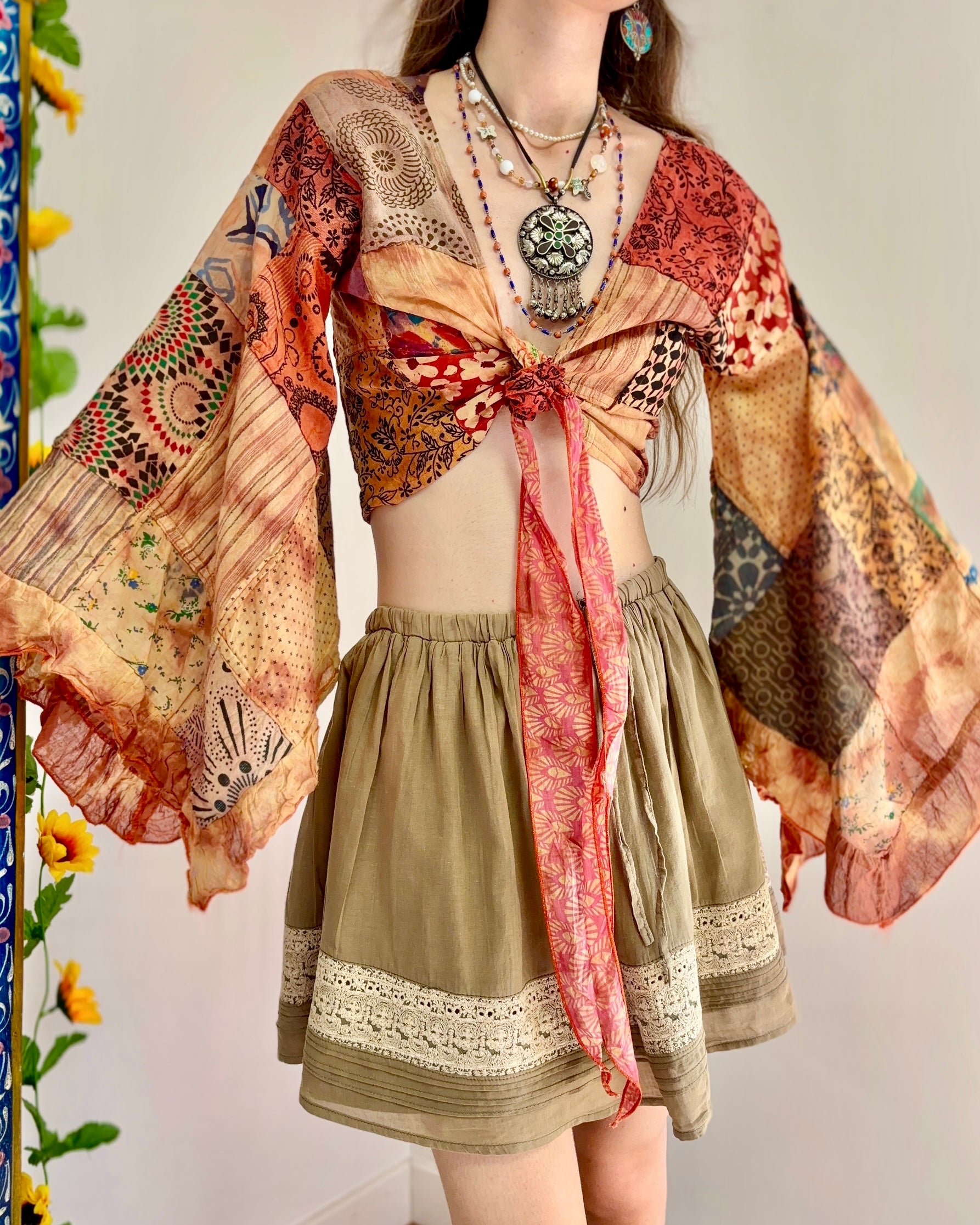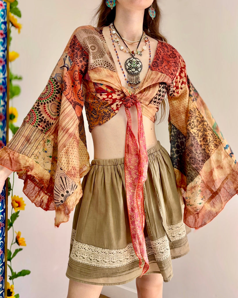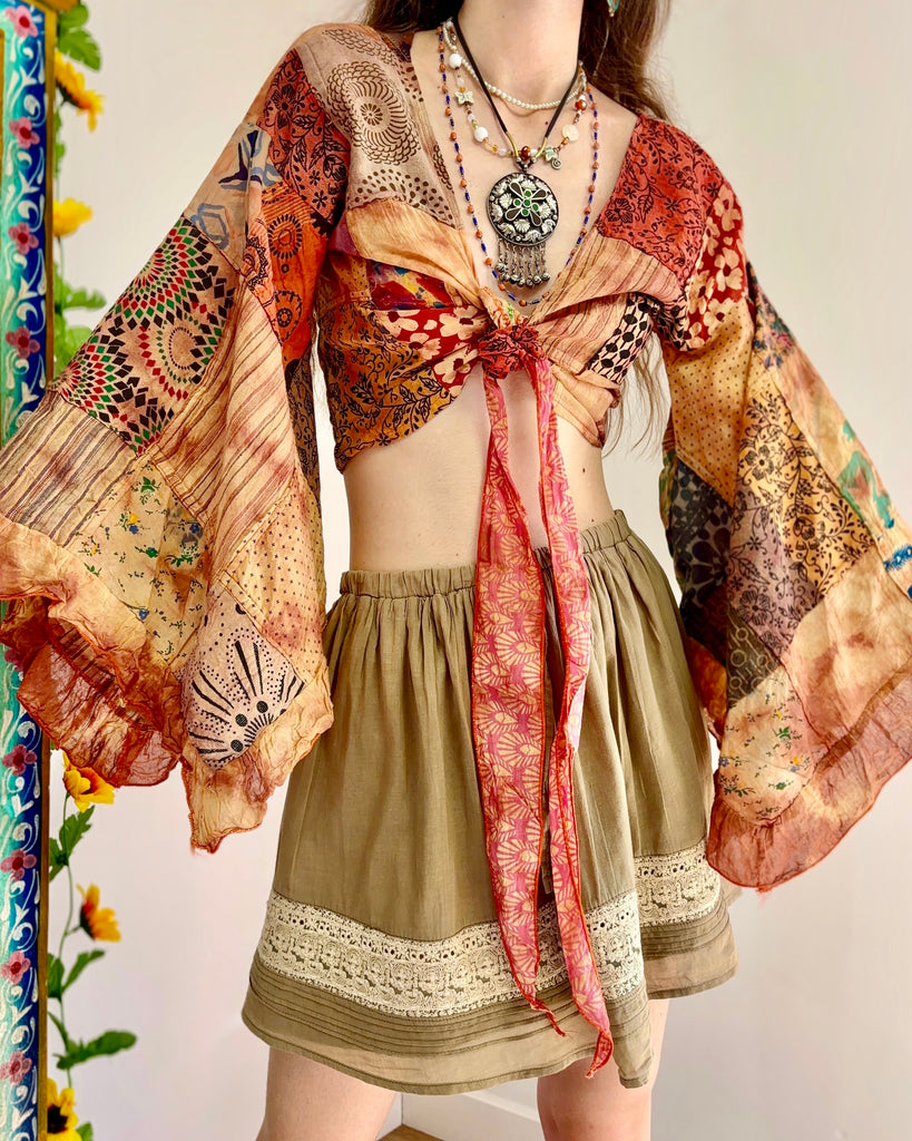 Earthy Orange Patchwork Pixie Wrap Top