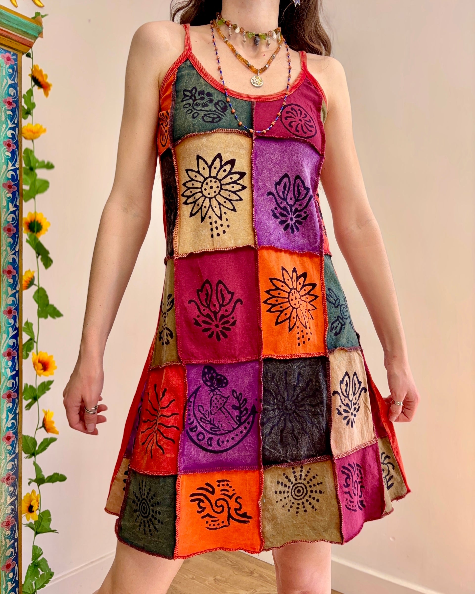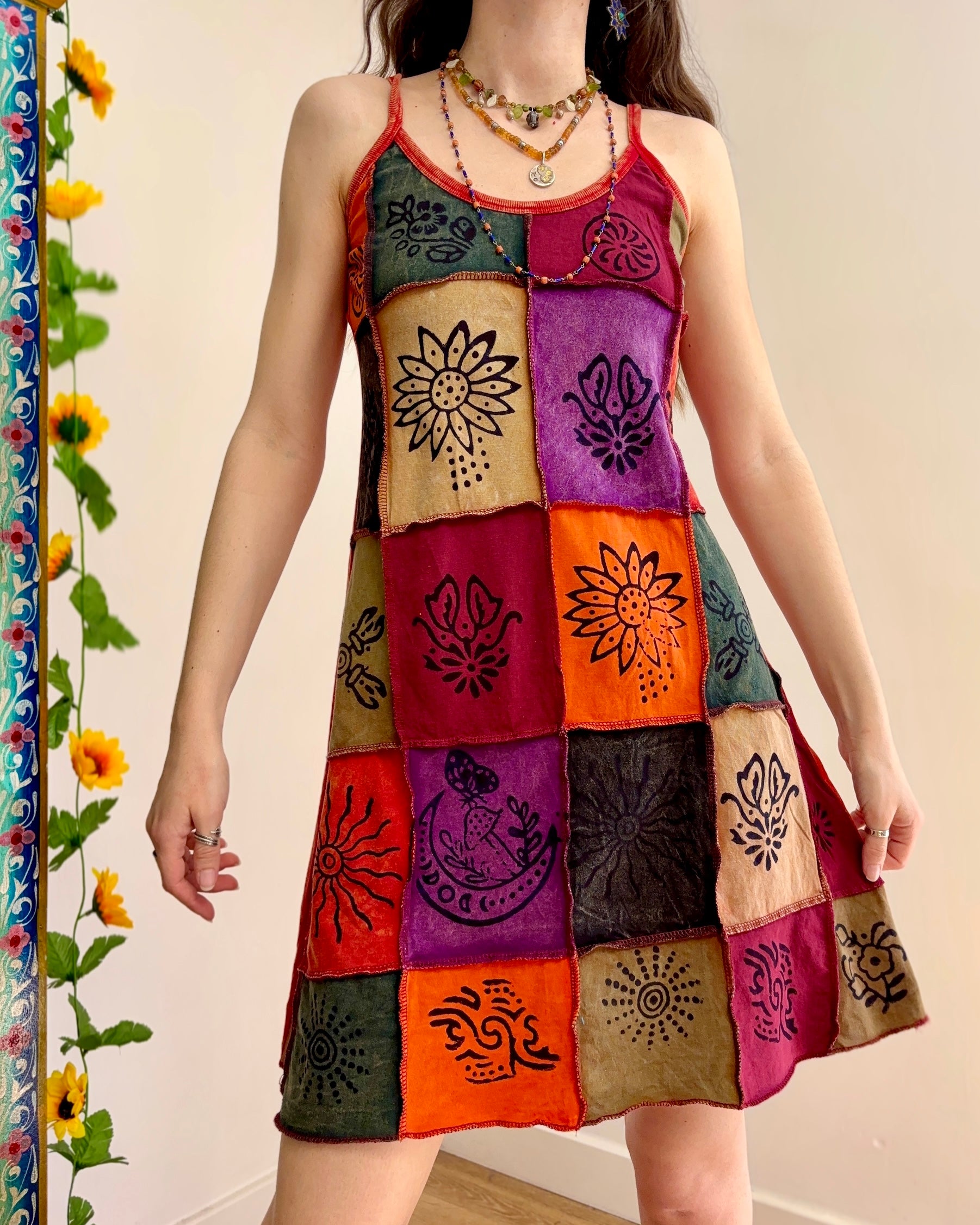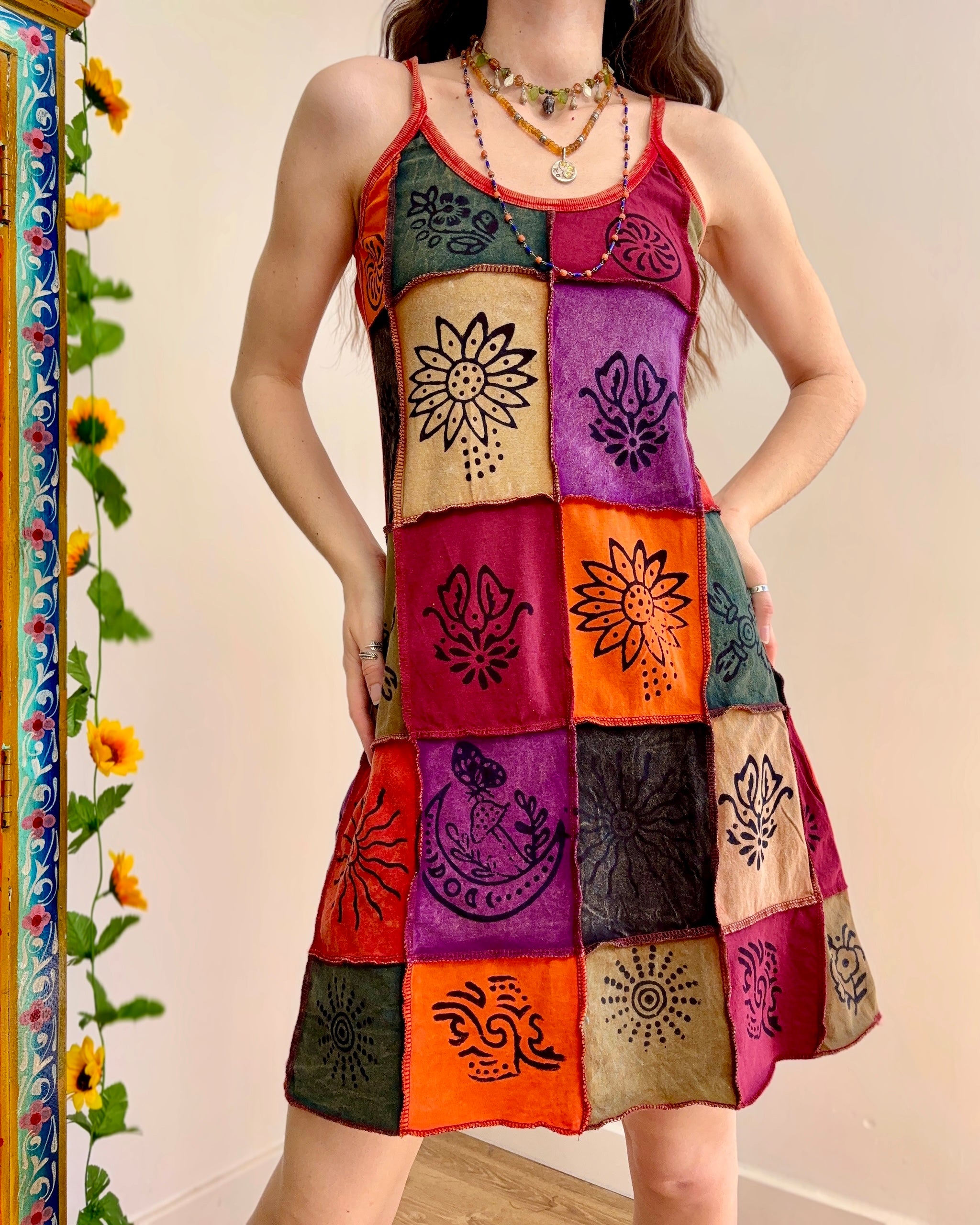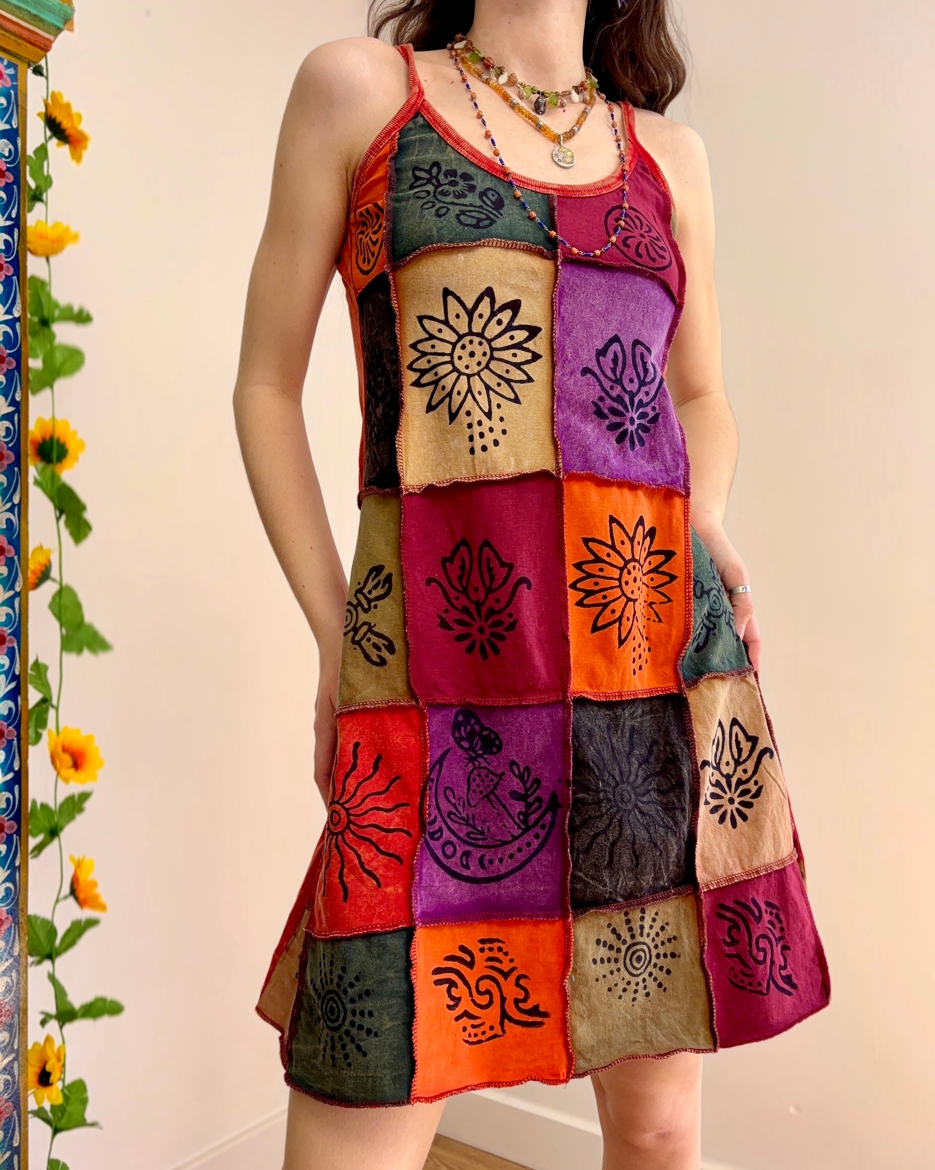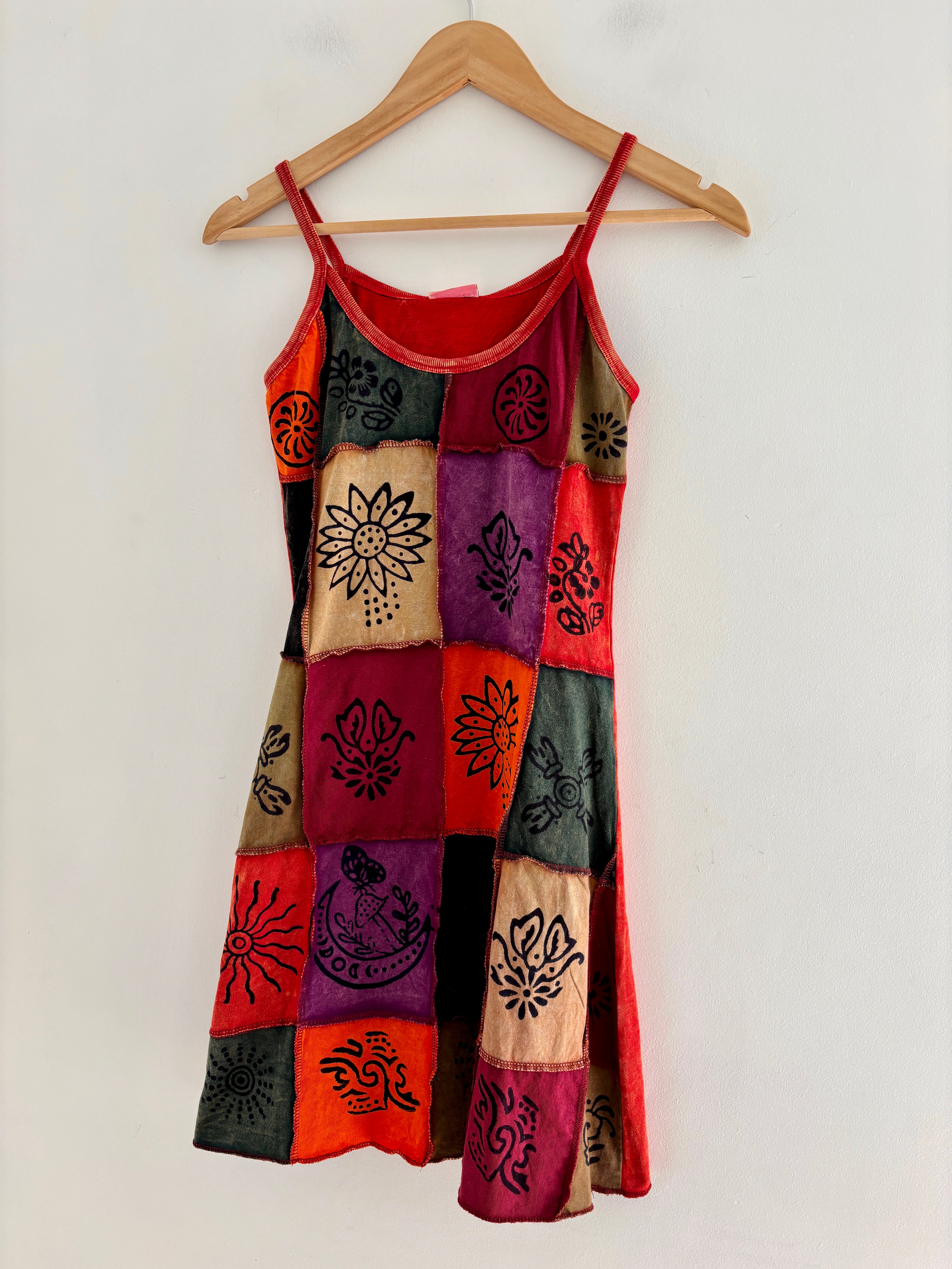 This dress is perfect for festival outfits and summer days. The unique patchwork design ensures no two dresses are exactly alike!