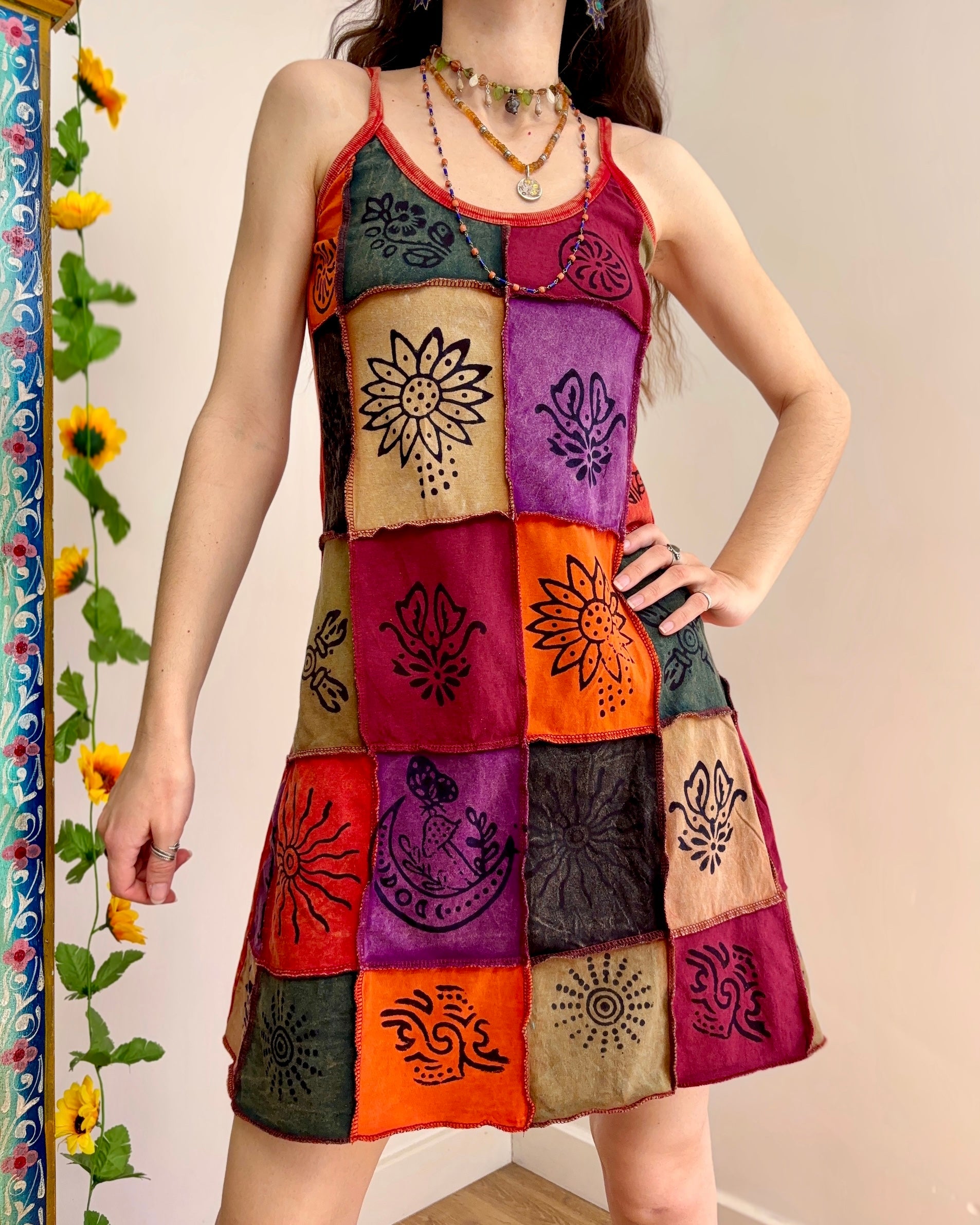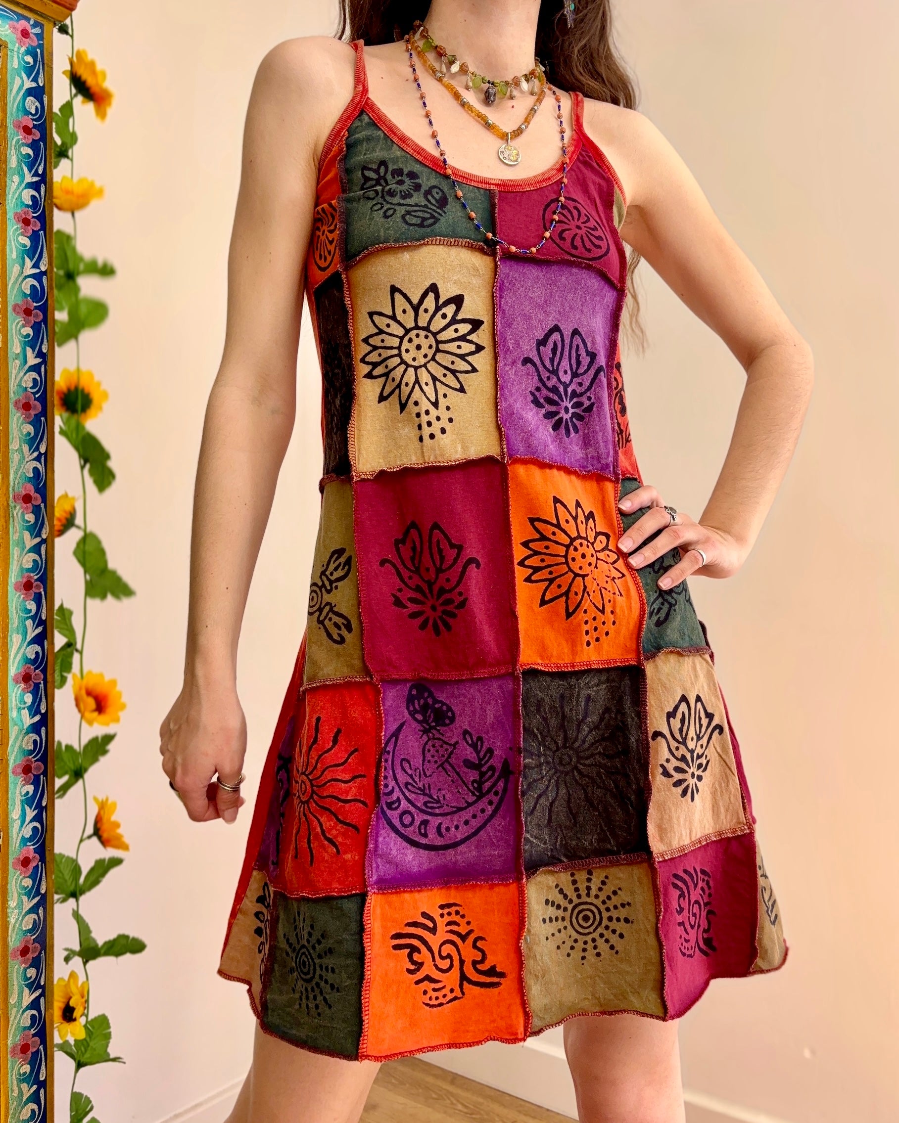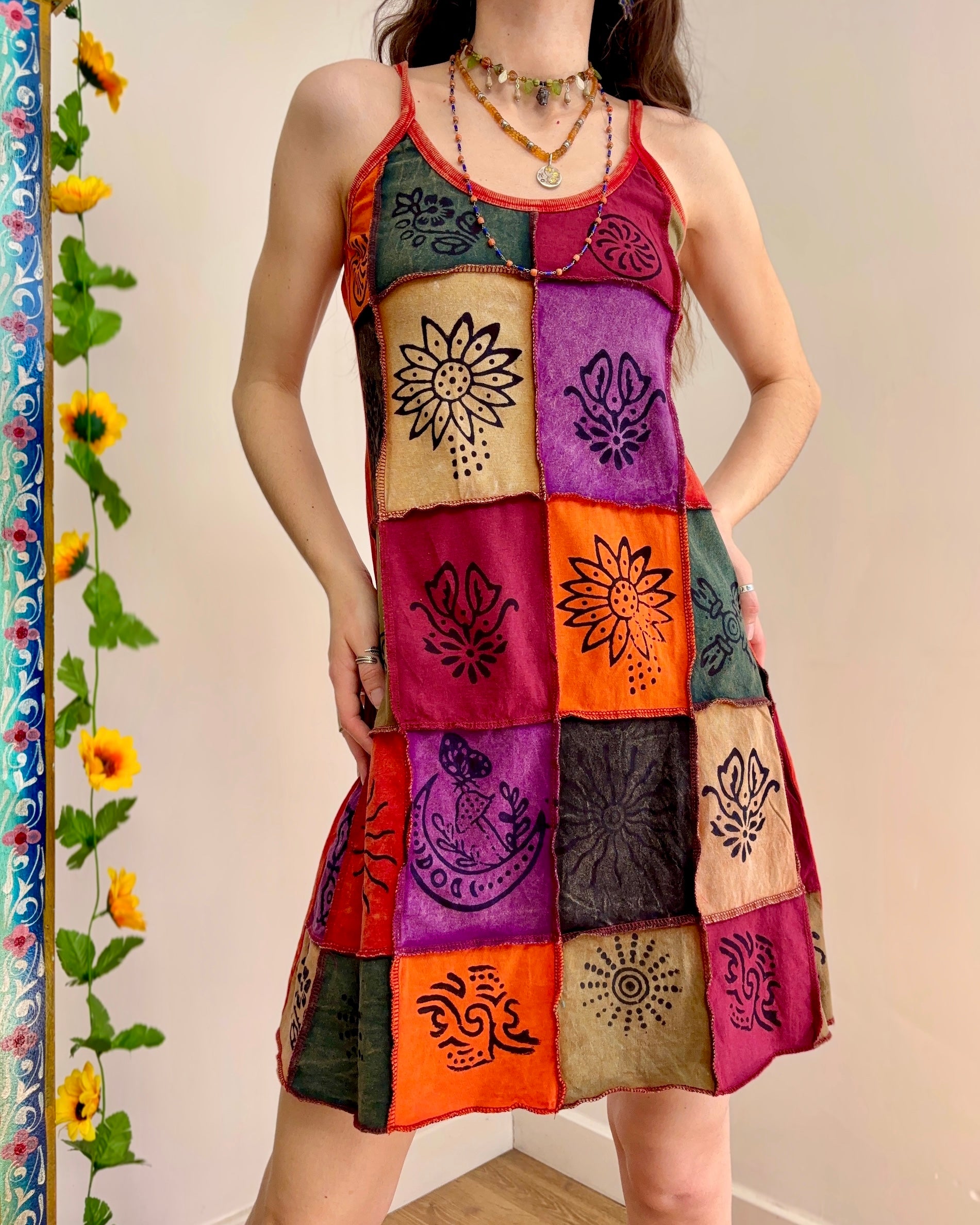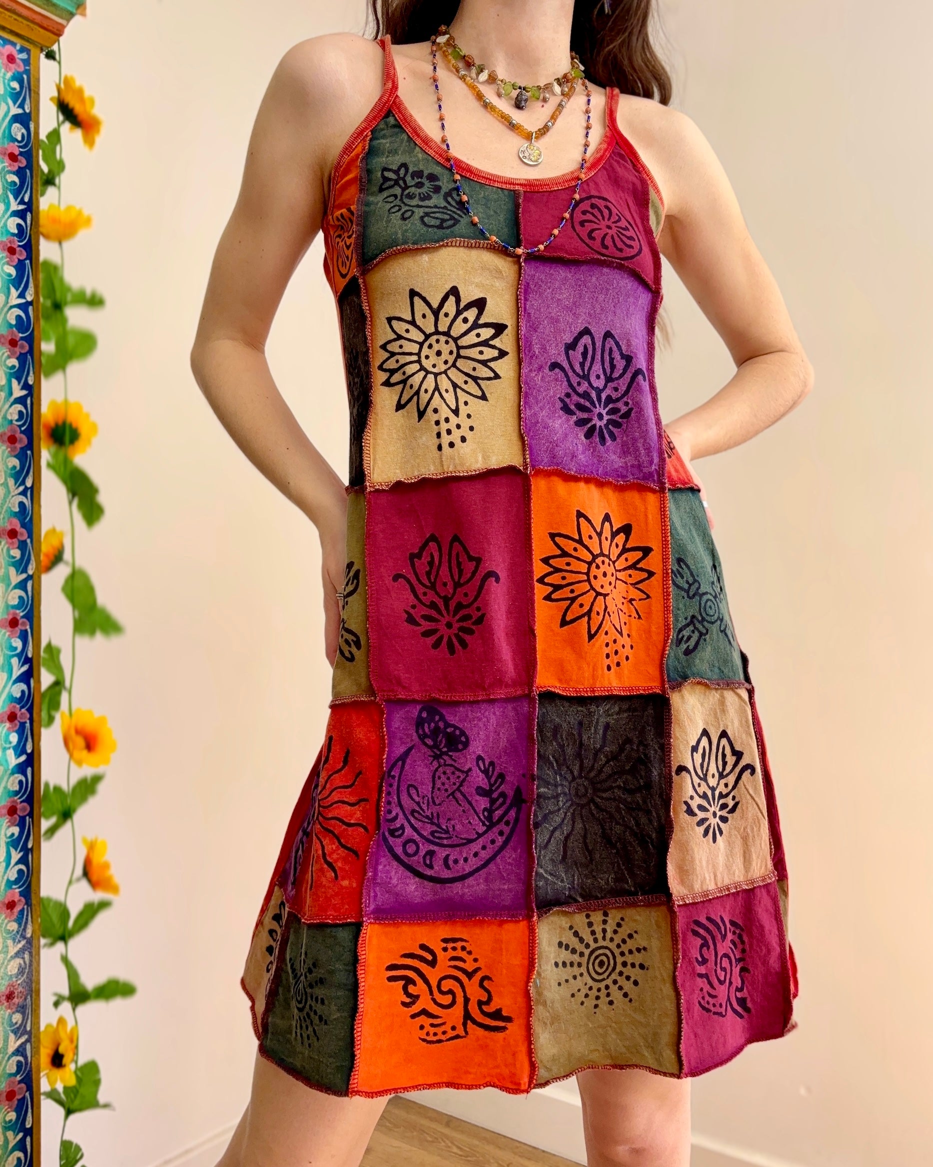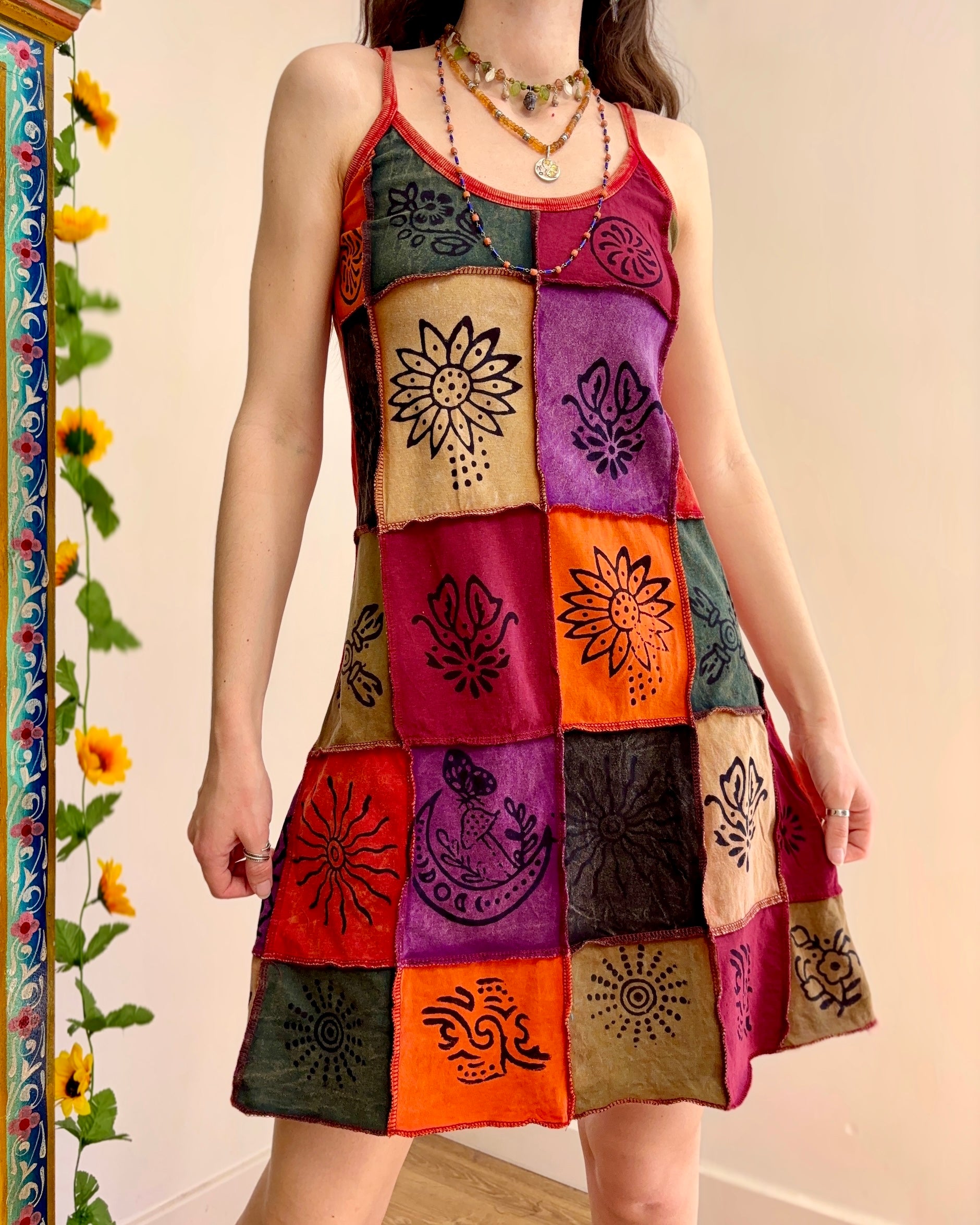 This dress is perfect for festival outfits and summer days. The unique patchwork design ensures no two dresses are exactly alike!