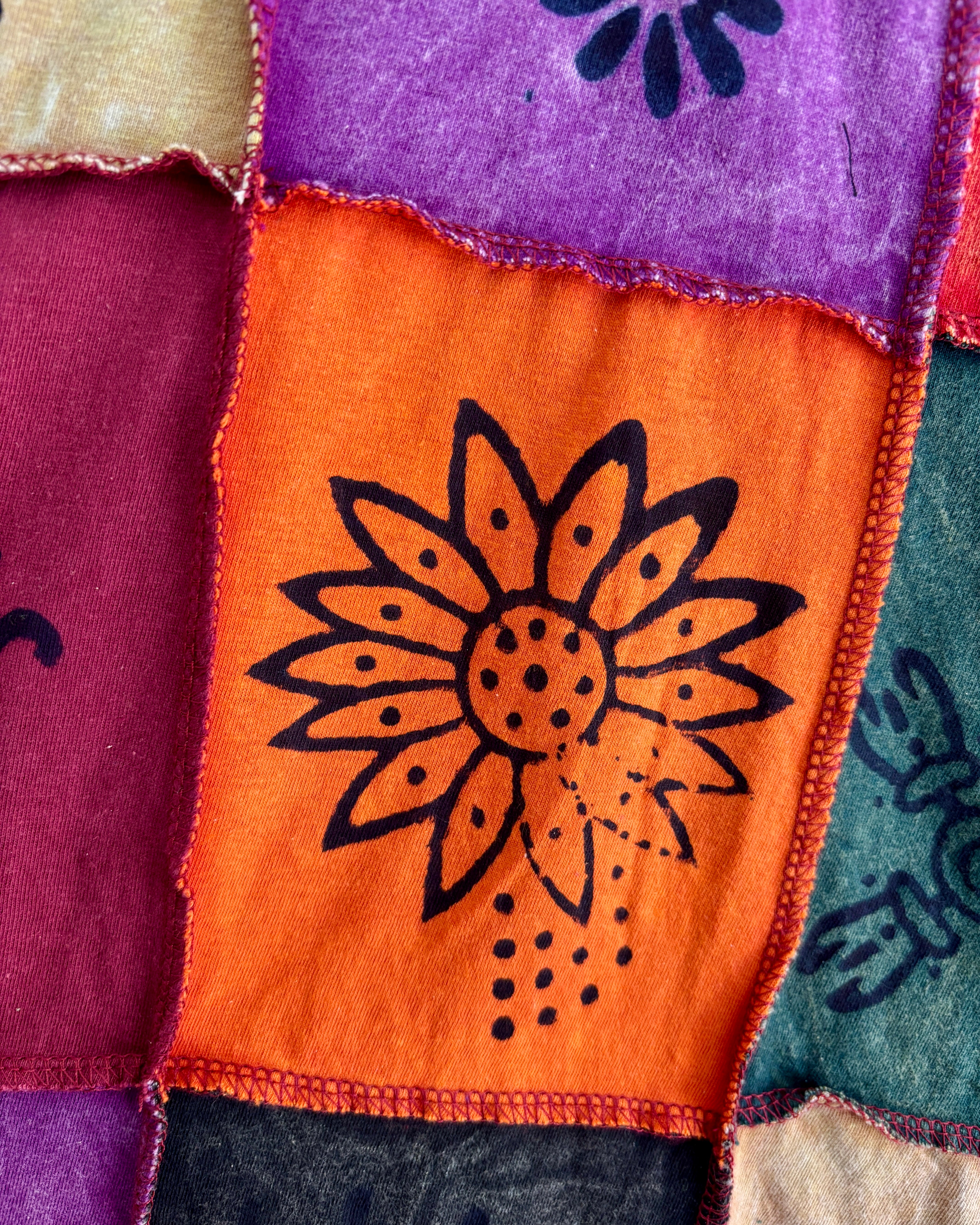 Crafted using traditional block printing techniques, each fabric panel is hand-stamped with intricate patterns before being stitched together.
