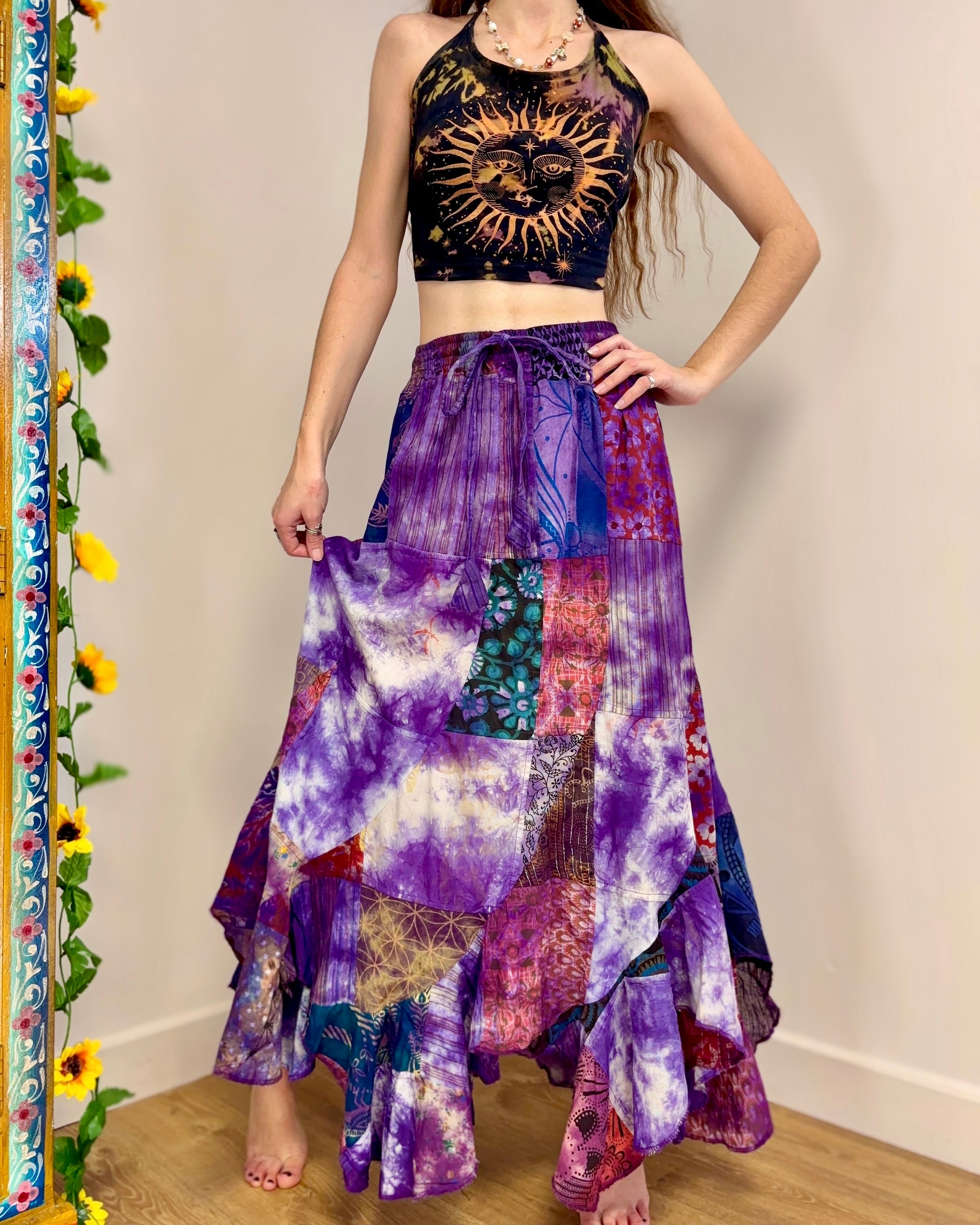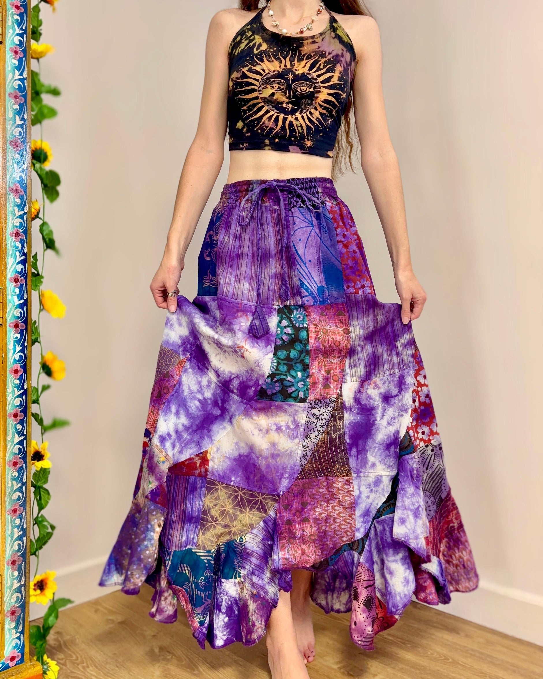 Purple Patchwork Maxi Skirt