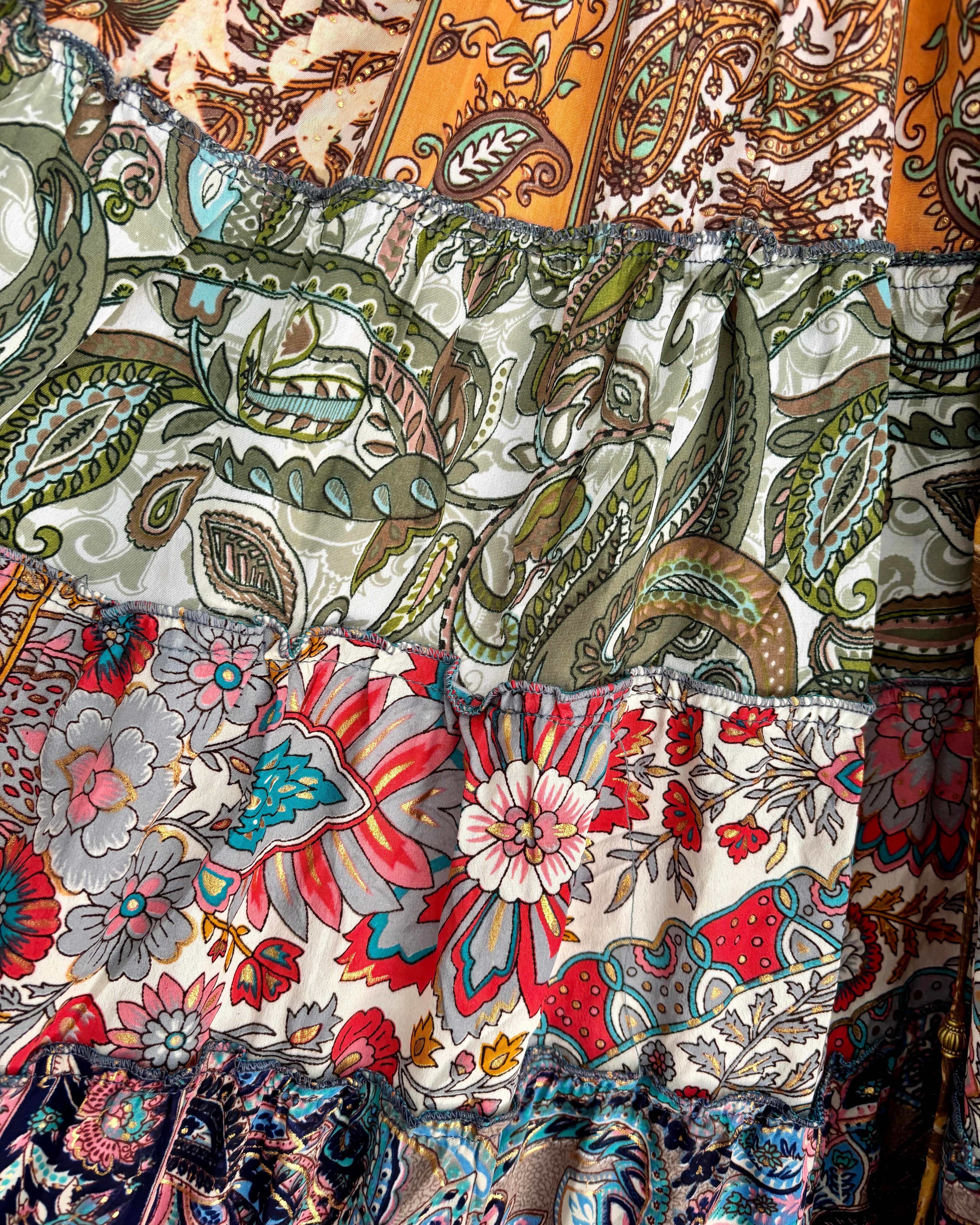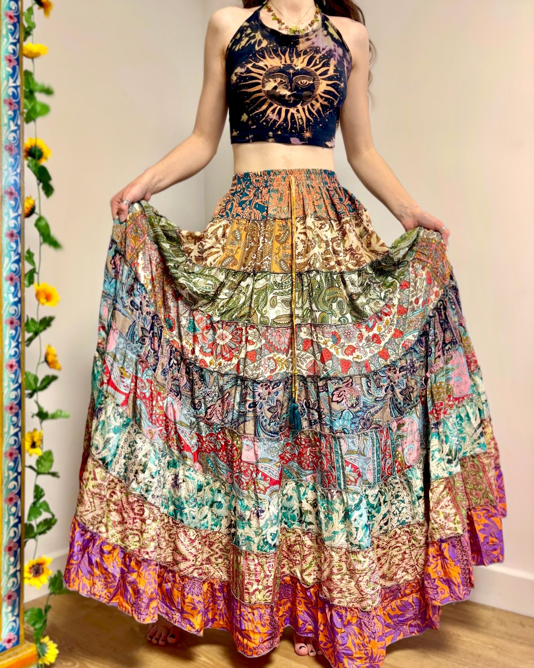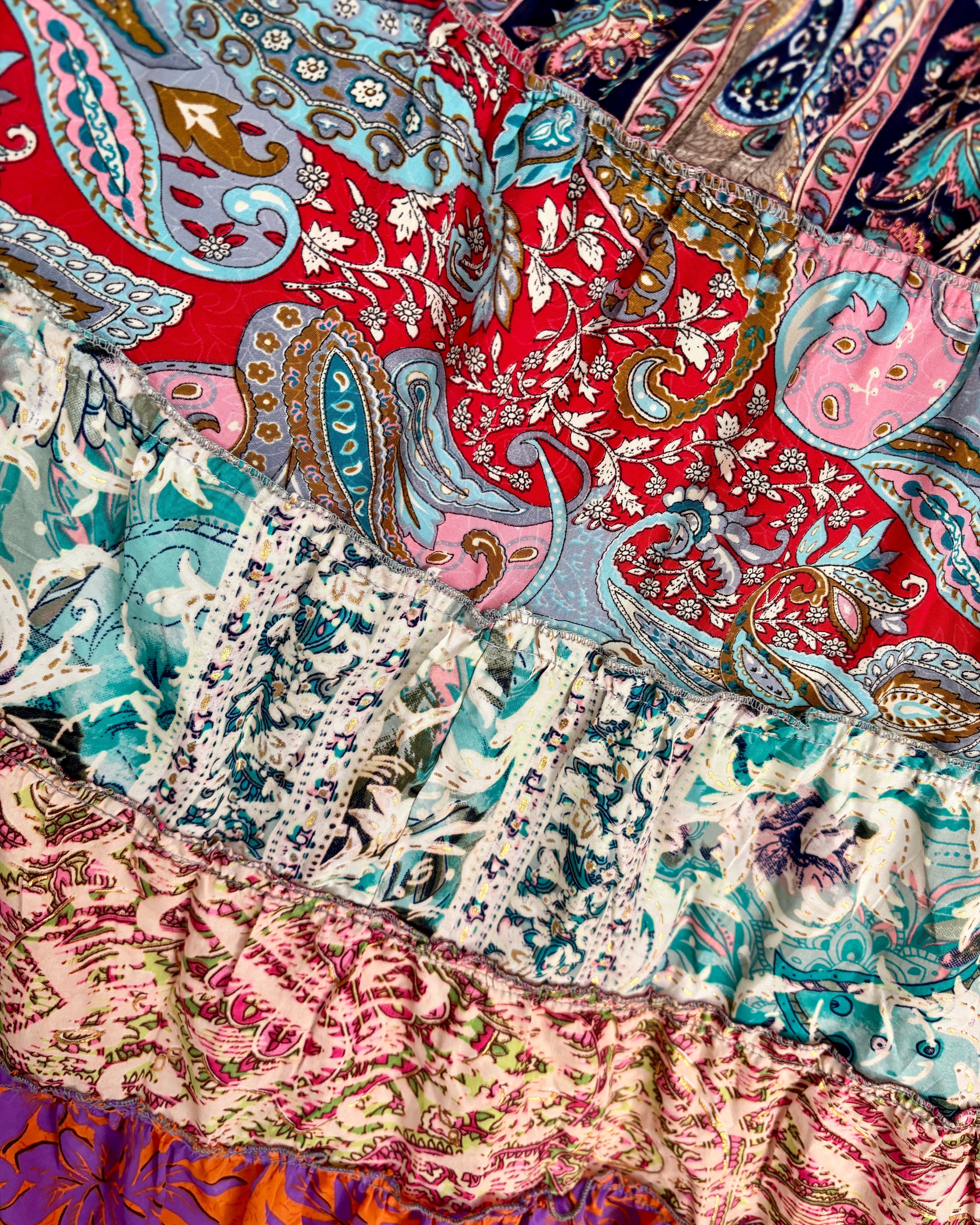 This piece is made from patches of beautiful recycled sari fabric that would otherwise have gone to waste. They are so magical and floaty, perfect for a festival hippie look!