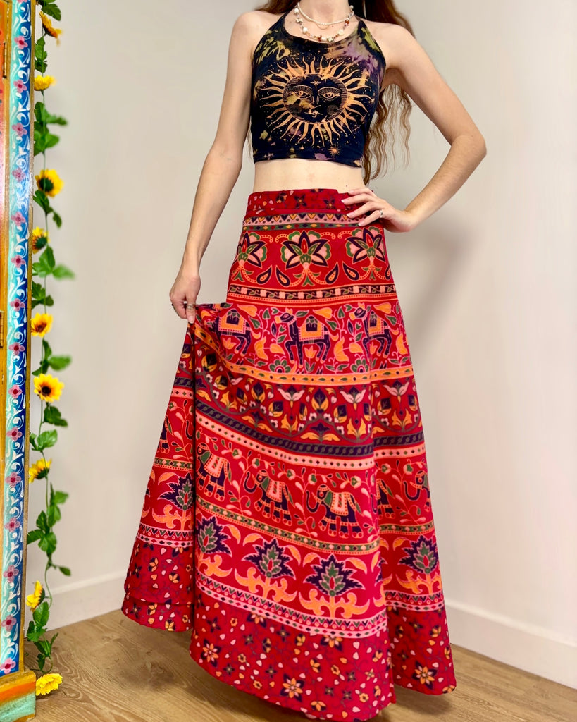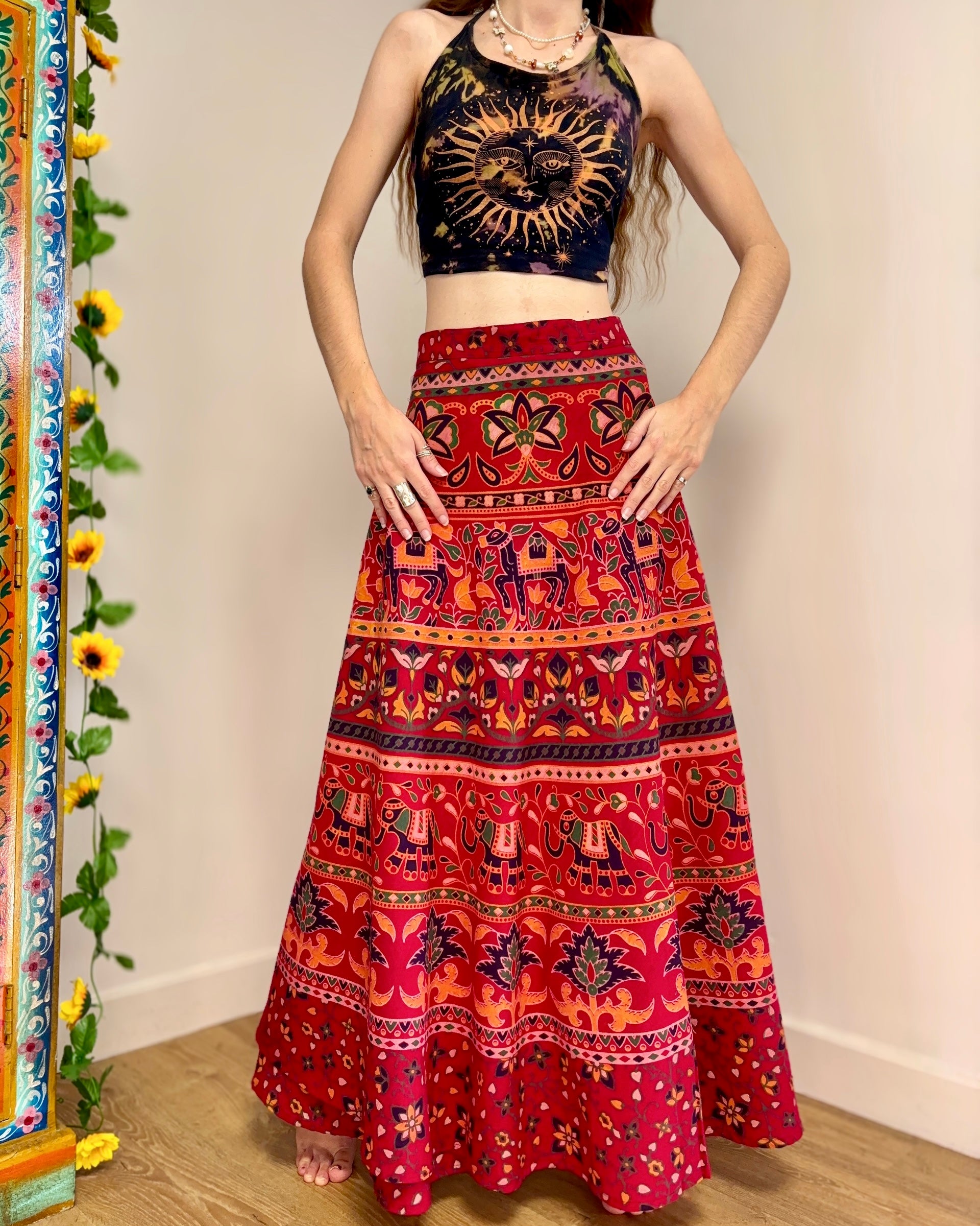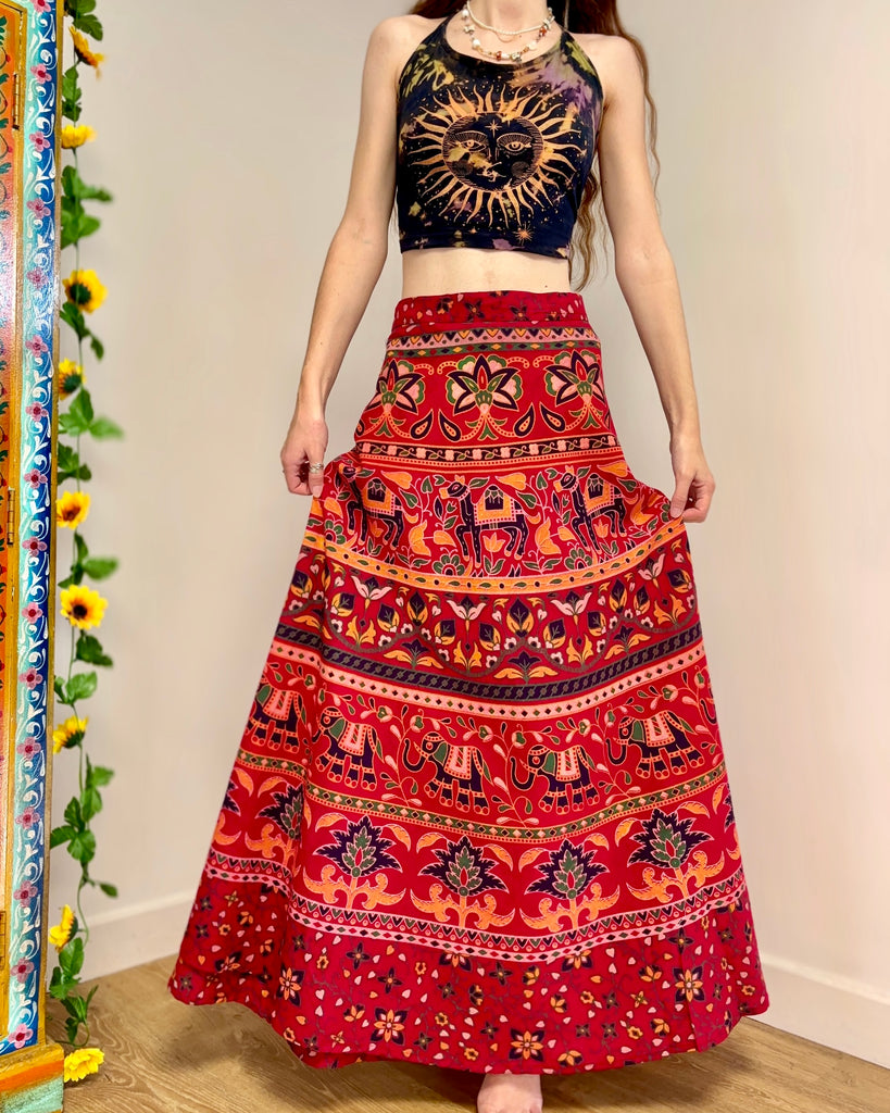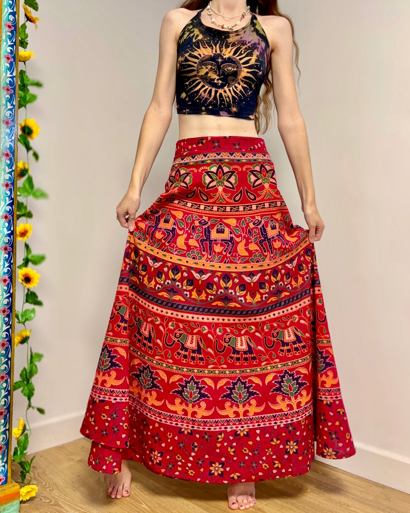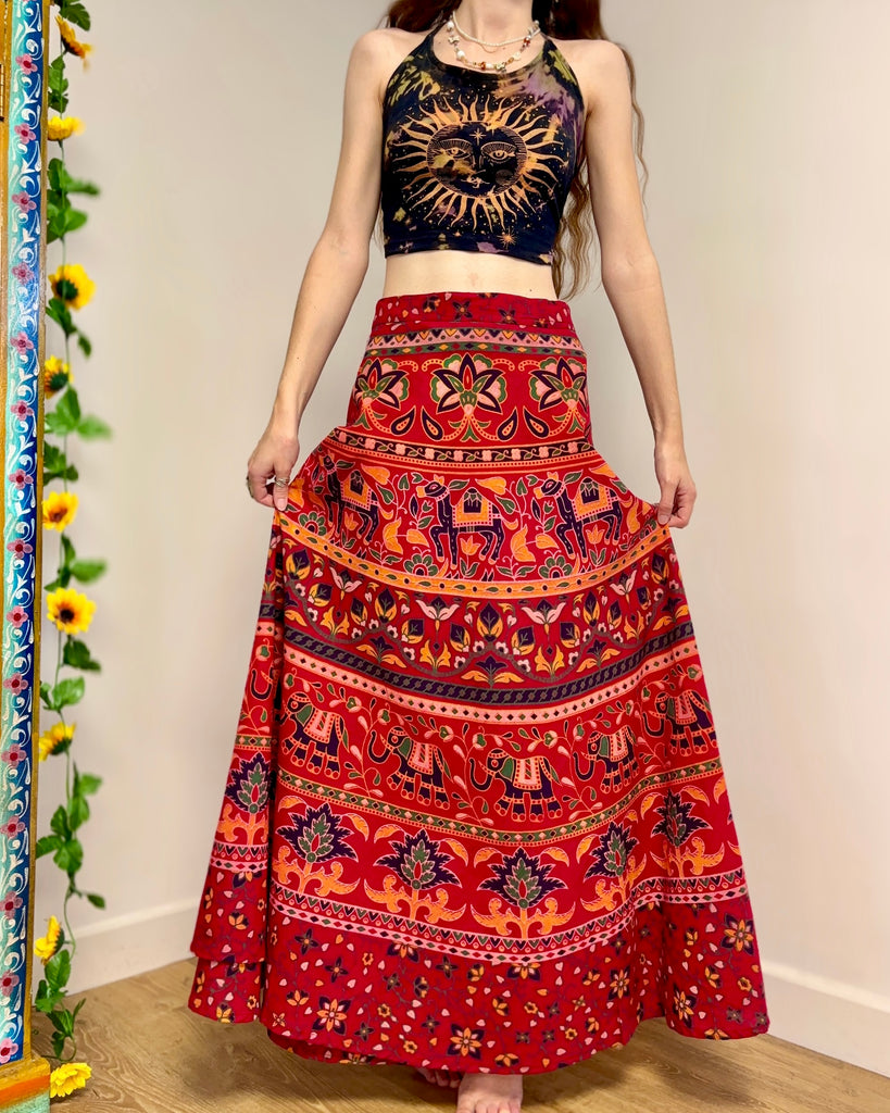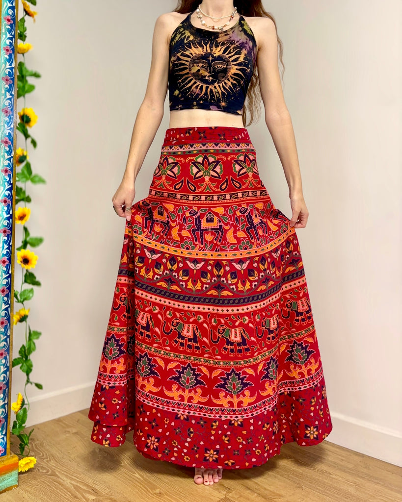 This beautiful wrap-around maxi skirt is made from Indian blockprinted 100% cotton.