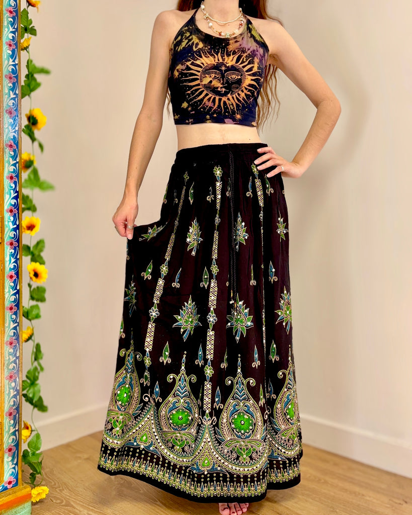 These skirts are Fair Trade and handmade in India, where the artisans are provided with the fair working conditions and wages we believe they deserve.