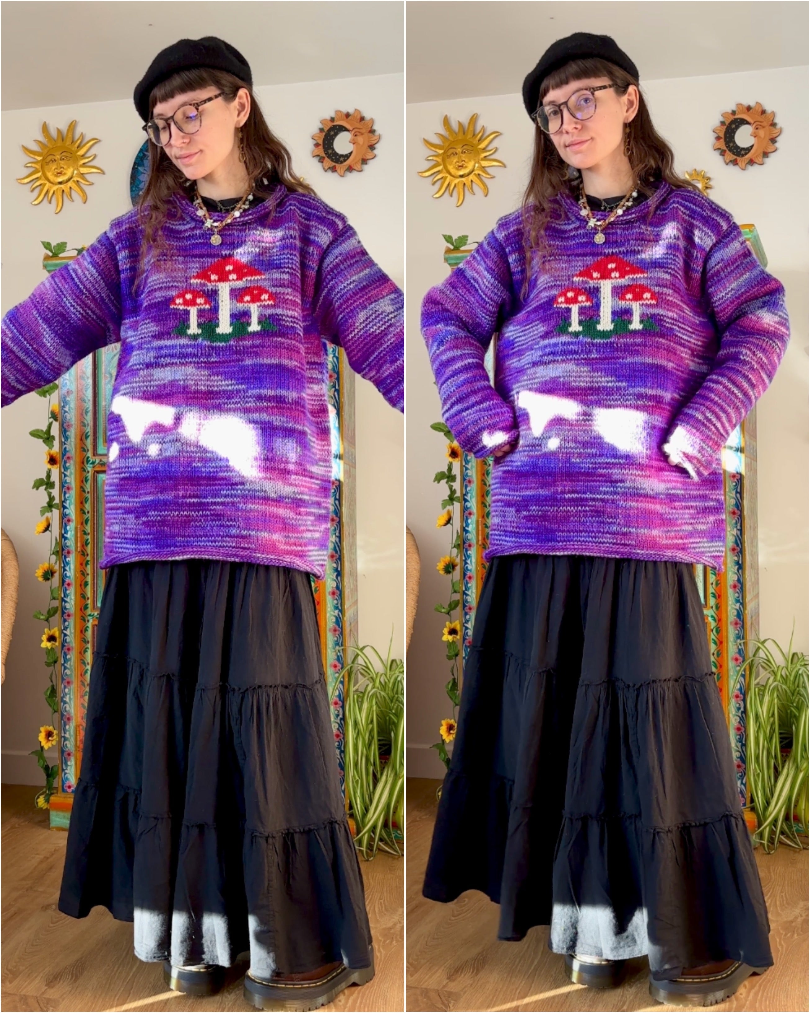 This magical mushroom jumper is hand-knitted by talented artisans Nepal. It is made from 100% wool.