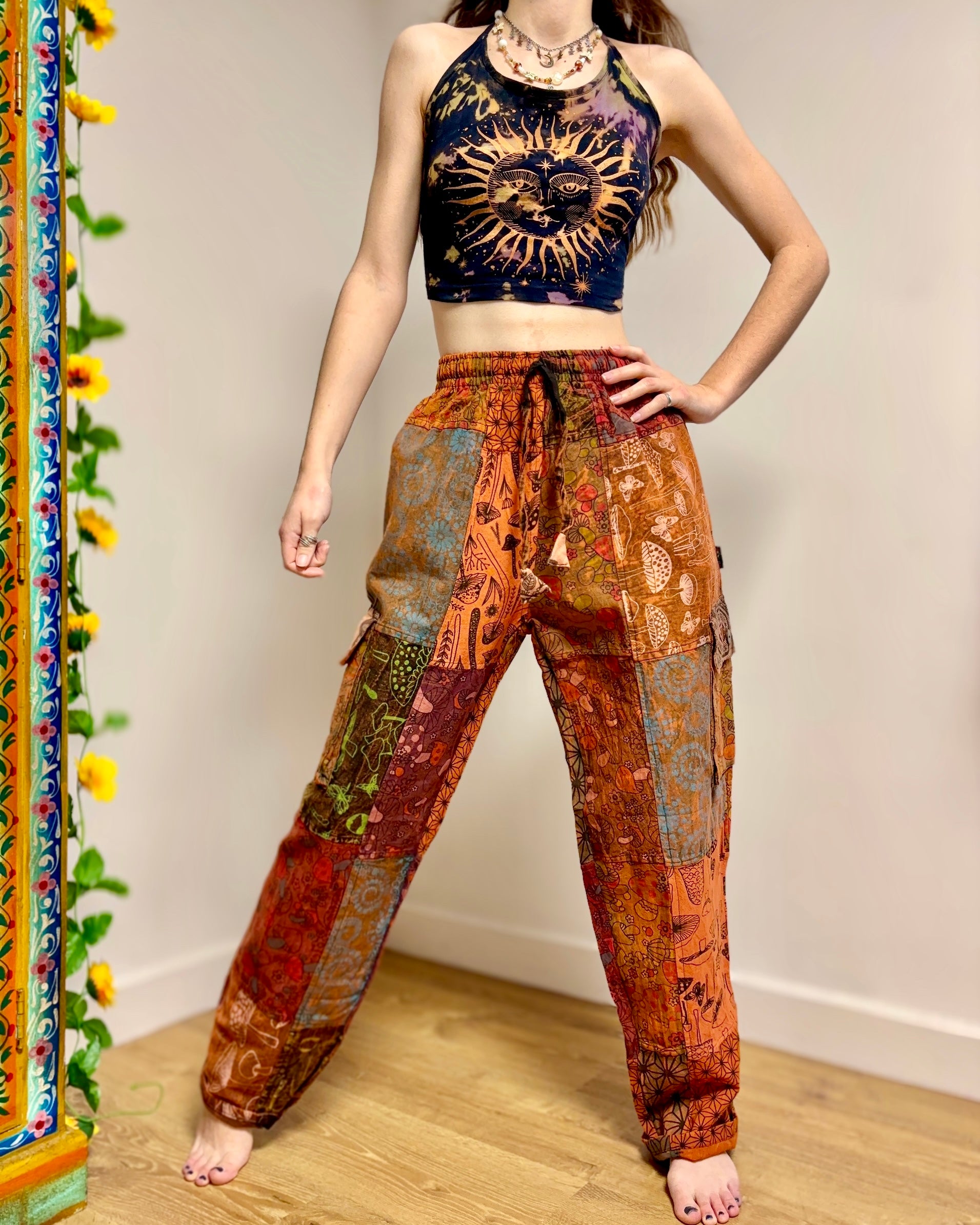 Earthy Orange Mushroom Patchwork Trousers