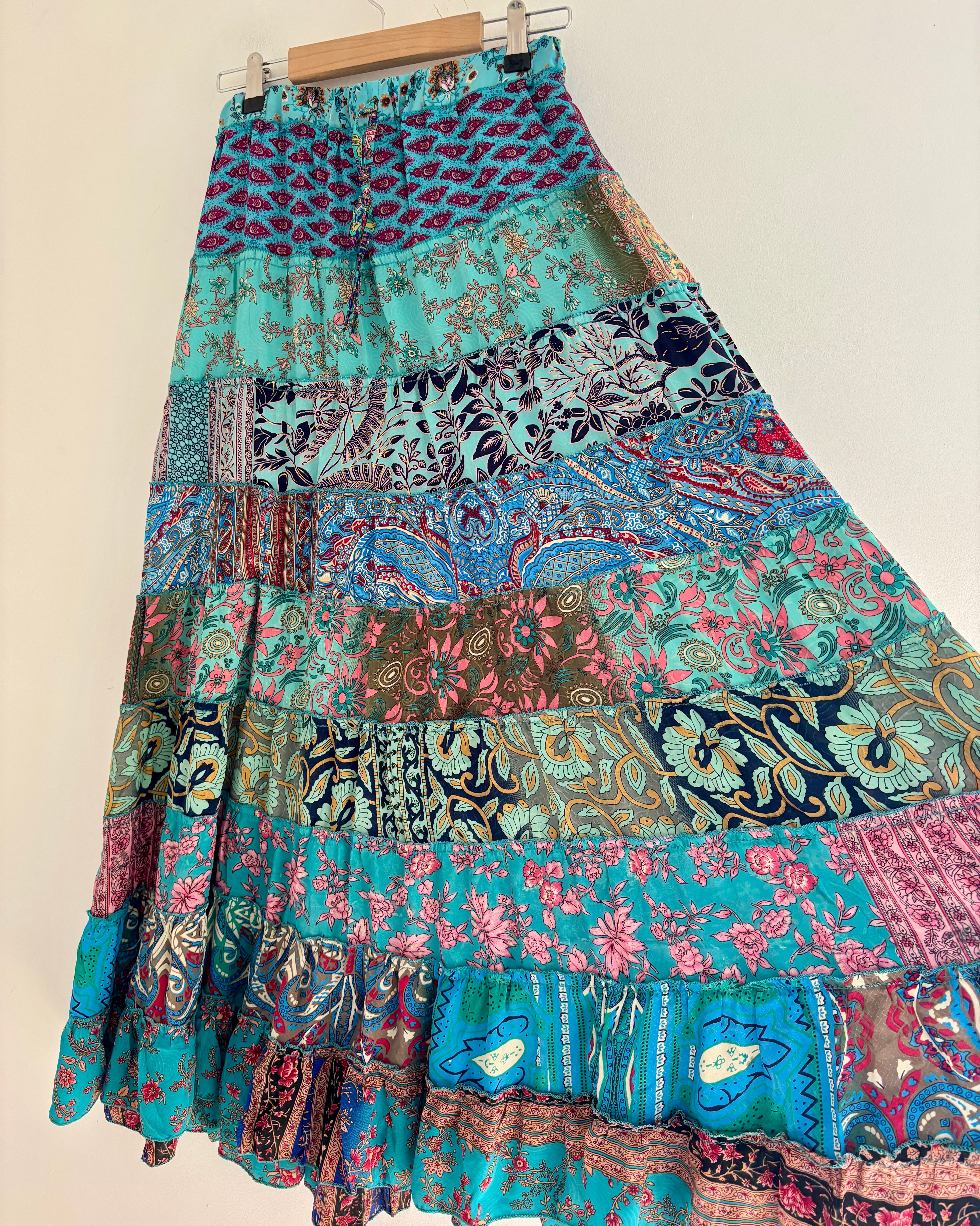 Blue Recycled Sari Patchwork Maxi Skirt