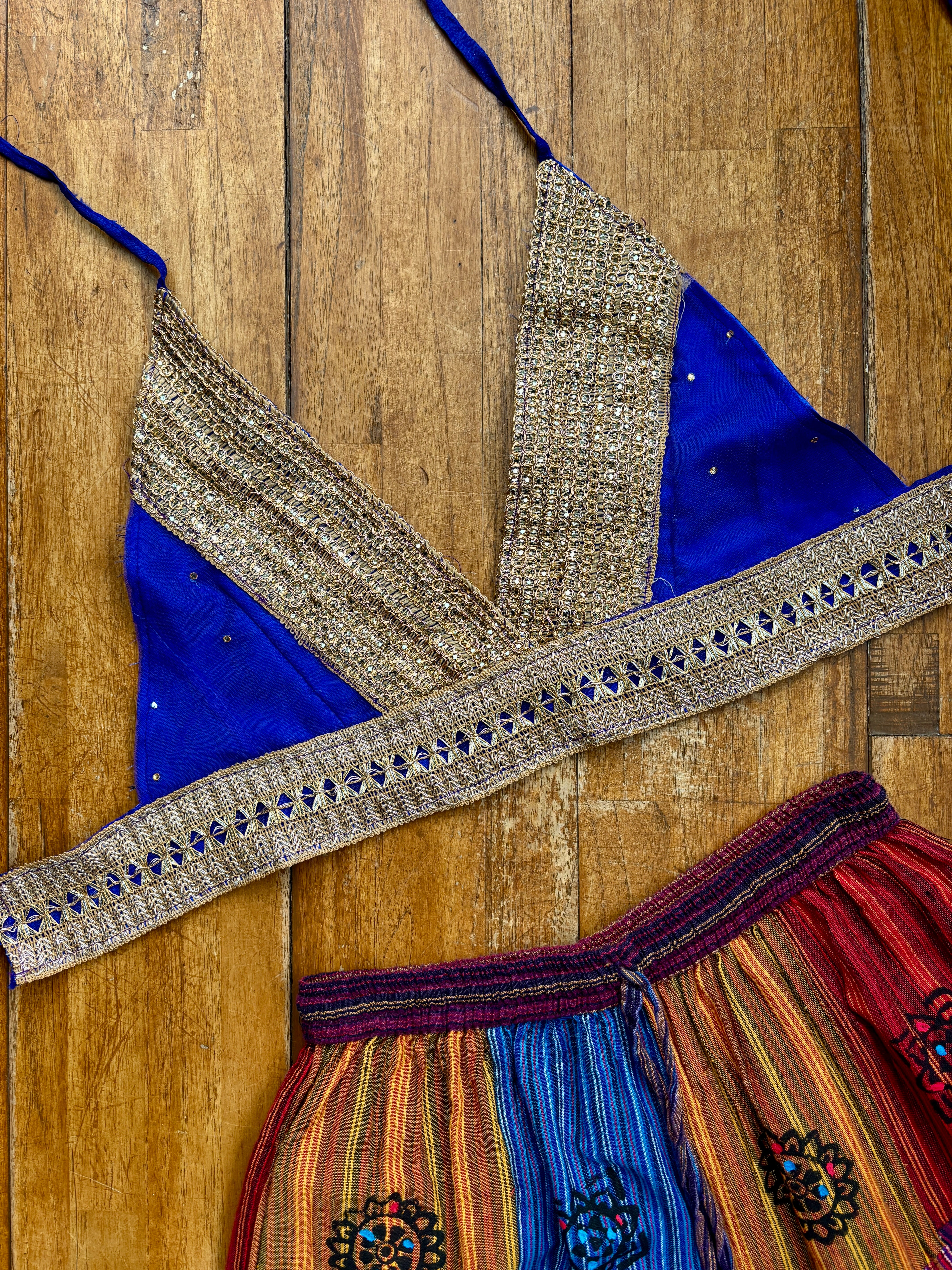 Embroidered Sequin Triangle Crop Top