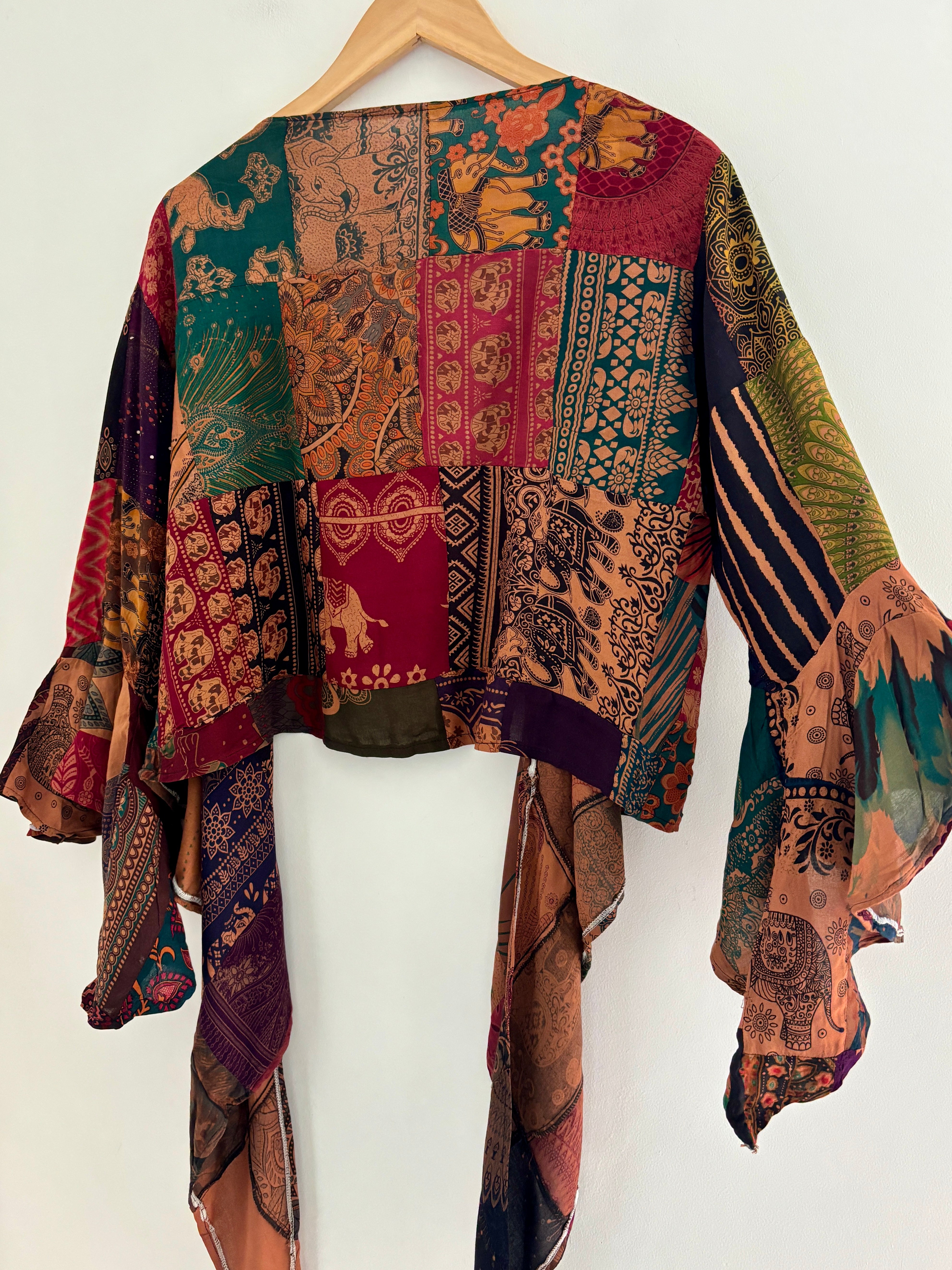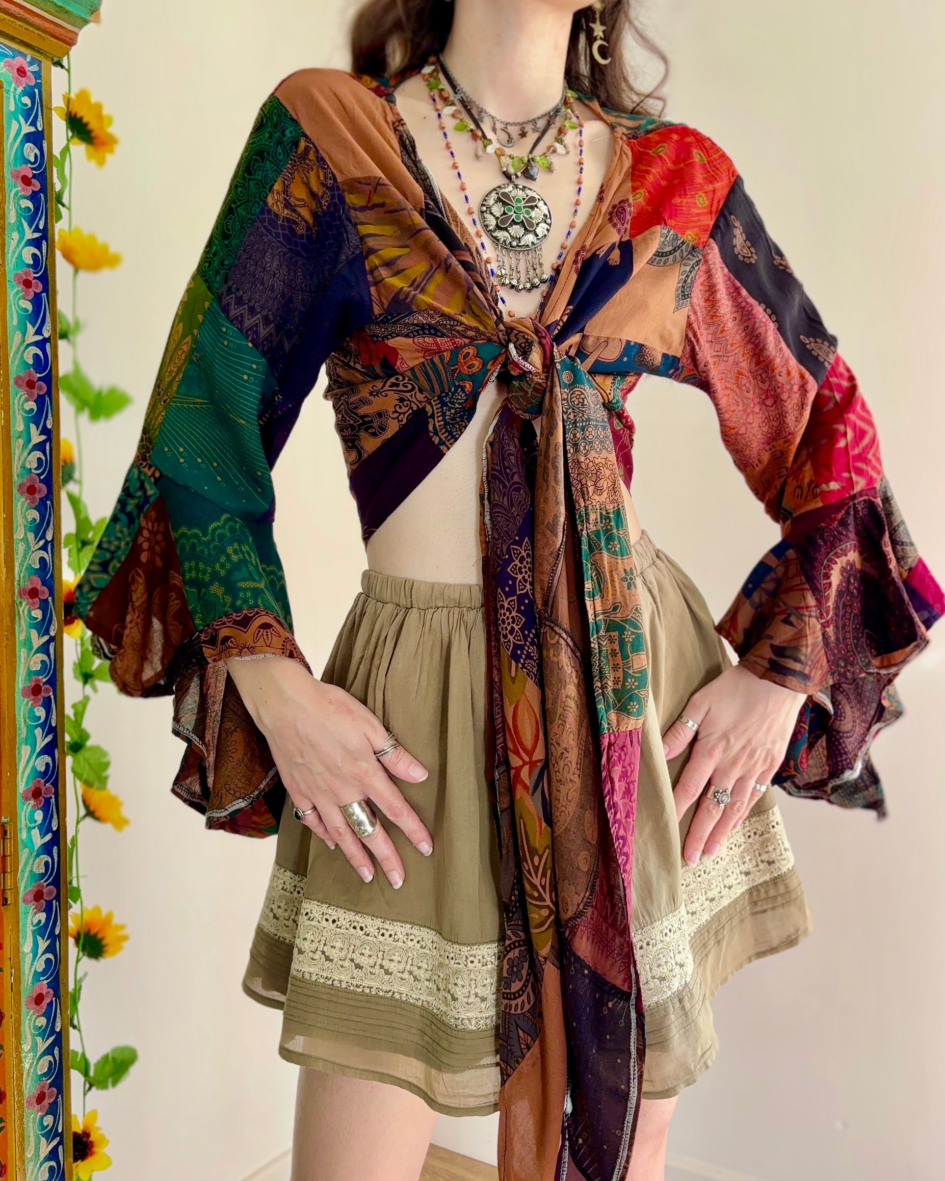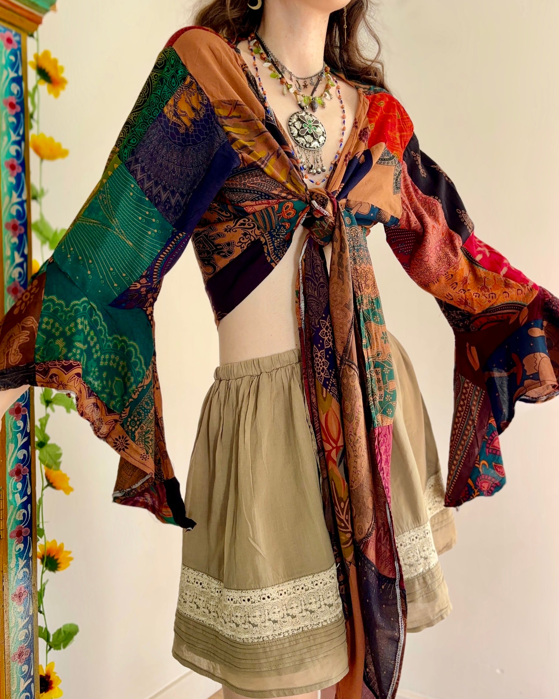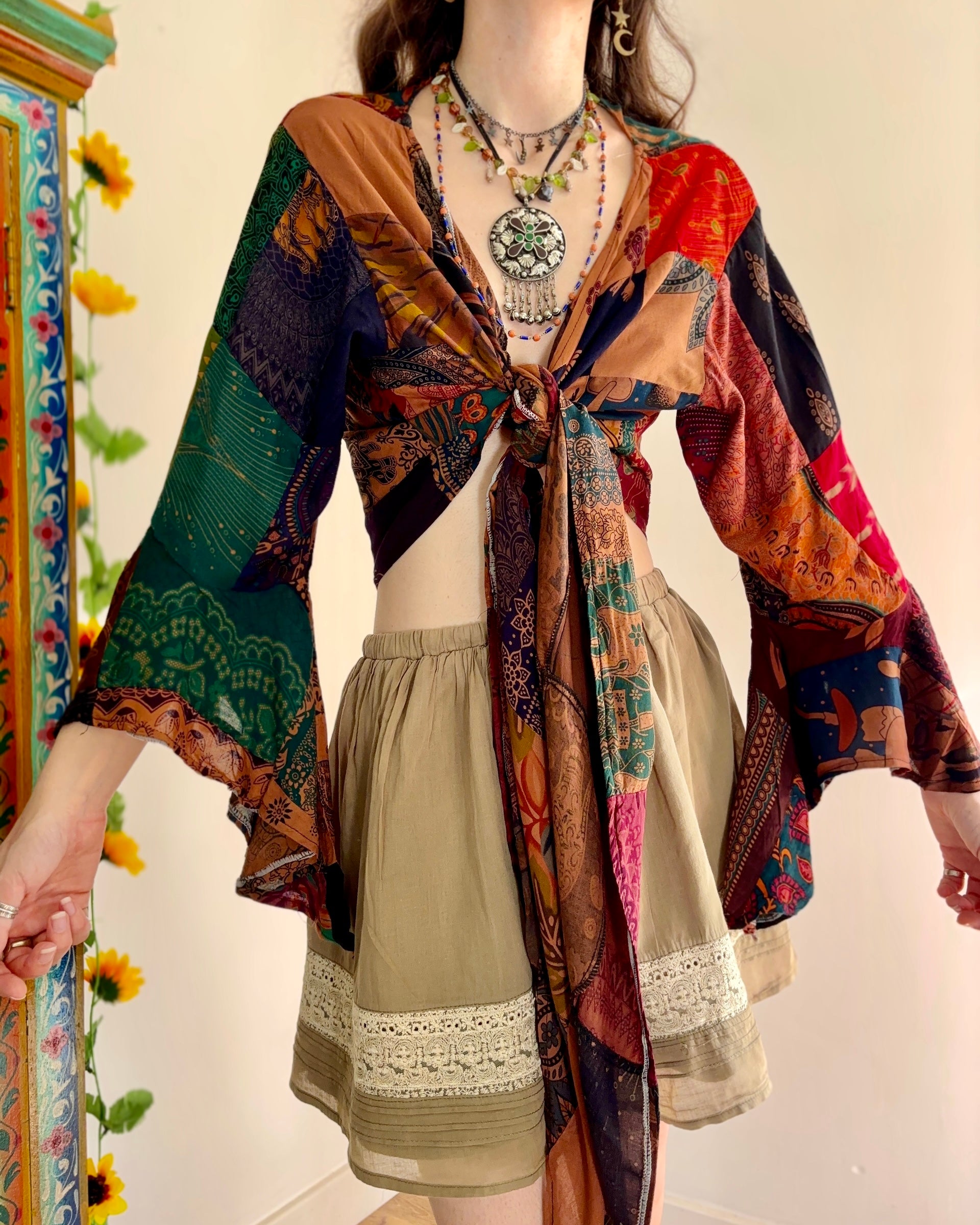 Earthy Patchwork Wrap Top